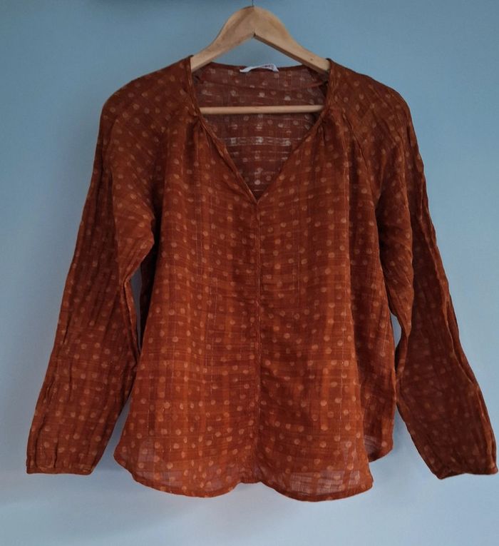 Super état pour cette tunique rehaussée de mini fils dorés qui la rendent plus lumineuse (voir photo gros plan)