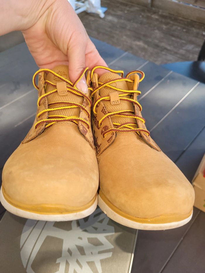 Neuve ! Voir photos de tous les détails. Facture disponible. Modèle édition limitée, je ne sais même pas si on peux encore les avoir. Pas à mon prix en tout cas . Prix neuf : 120e , acheté en promo pour être honnête, mais malheureusement pour moi pas la bonne saison . #timberland Remise automatique sur lots Mesure semelle au ➕️ 12 , donc convient aux pieds entre 21,6 et 22,6 cm. Hyper confortable, et très très légères et flexibles, on se croirait en chaussons ( je m'étais acheté les mêmes)