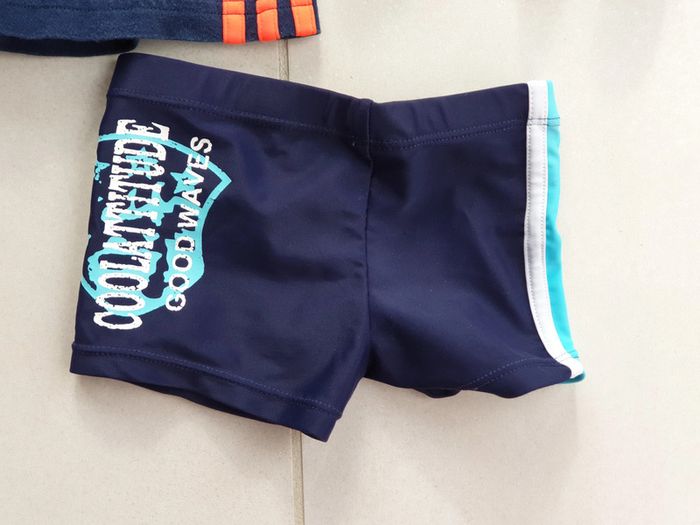 1 maillot de bain slip de bain 6 mois bleu marine et bleu ciel sur le coté (2€) 1 short adidas bleu marine avec rayures sur le coté orange 3-6 mois (3€) 1 short bleu nike 6/9 mois (2€) 6€ le lot si vous prenez les 3 articles #laetie69_taille3mois #laetie69_taille6mois #laetie69_taille9mois