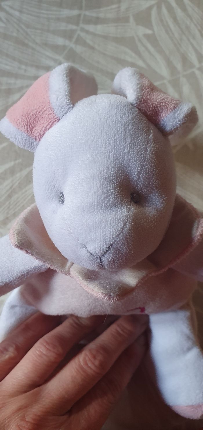 Doudou lapin rose et blanc Elle mesure 30 cm avec les oreilles Baby nat
