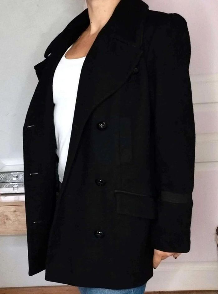 Joli manteau court croisé, NafNaf, vintage : Acheté au début des années 2000 ⬇️ ⚠️ Taille 38 indiquée mais correspond à un 36 actuel ⭐ En excellent état, aucun défaut si ce n'est les boutons métalliques noirs légèrement décoloré sur les reliefs 🧶 80% Laine, 20% Nylon (polyamide) 🎨 Noir 🧥 Caban bien chaud Jolis boutons métalliques 2 poches à rabats et 2 poches "invisibles" au niveau de la poitrine (n'ont pas été utilisées, sont encore cousues mais sont bien de vraies poches) Petite fente à l'arrière Épaules pincées Entièrement doublé 📏  Dimensions  : Longueur à partir du haut de l'épaule : 70 cm Largeur d'épaules : 38 cm Largeur de poitrine : 50 cm Longueur de la fente : 14,5 cm --------- N'hésitez pas à jeter un œil au reste du dressing 🤗 #laetijafemme #laetijafemmeXS_S #laetijafemmeS_M *********** 📦 J'accepte les retours 👍 Et je prends les frais à ma charge si par mégarde l'erreur venait de moi 🫣 **************** #vintage #retro #années90 #90s #y2k #annees2000 #00s #nafnaf #legrandmechantlook #veste #blazer #manteau #pardessus #manteaucroisé #caban #mancheslongues #laine #wool #lana #colv #coltailleur #coupedroite #ajustee #automne #hiver #misaison #casual #classique #travail #officesirene #officecore #chic #preppy #chaud #confortable #elegant