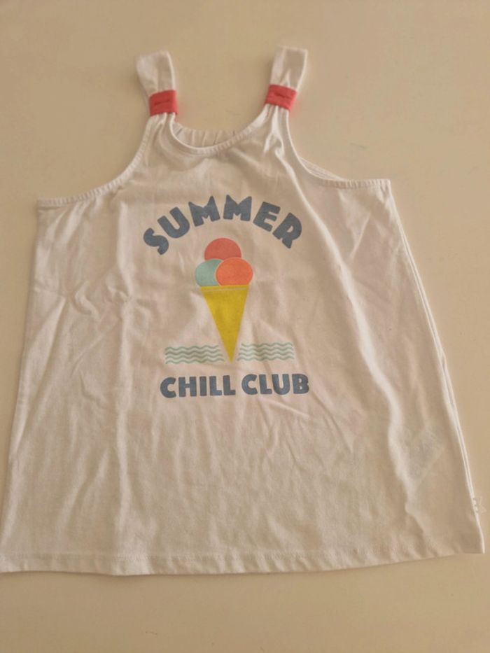 Top d'été/ T-shirt sans manche pour fille Taille 10 ans Acheté chez Okaïdi Coloris blanc avec motif glace pailleté Inscription SUMMER Neuf, jamais porté (je l'ai lavé mais ma fille ne l'a jamais mis...)