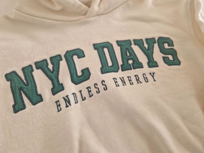 Sweat à capuche pour garçon Taille 18/ 24 mois Acheté à Zara Coloris crème avec inscription brodée en vert 100% coton Très bon état, très peu porté