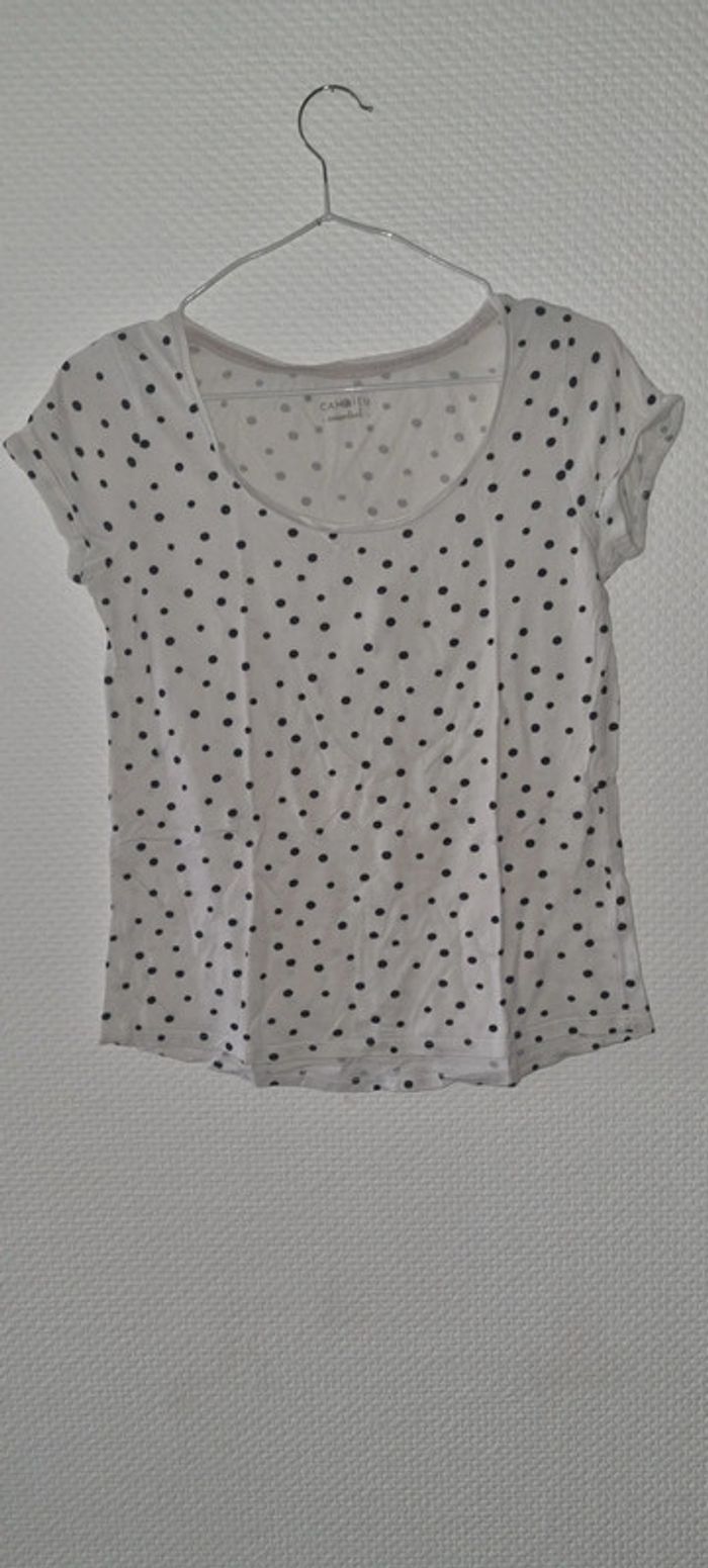 T-shirt à pois manches courtes taille 36 / S Camaïeu