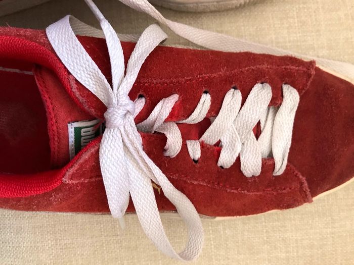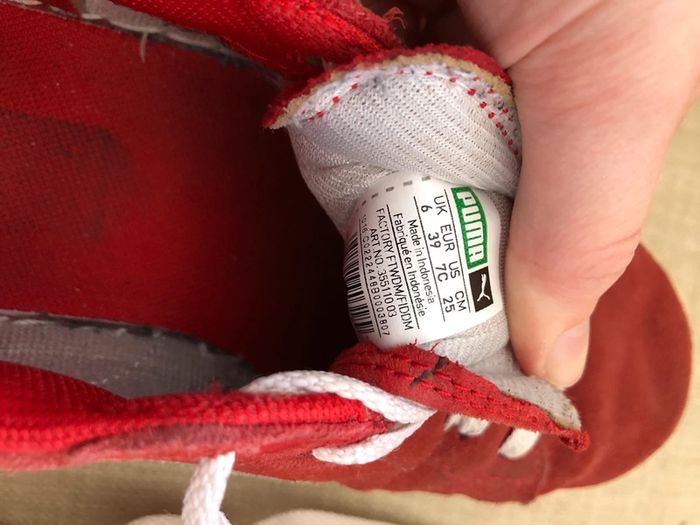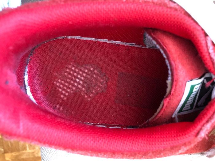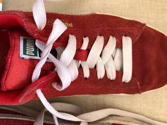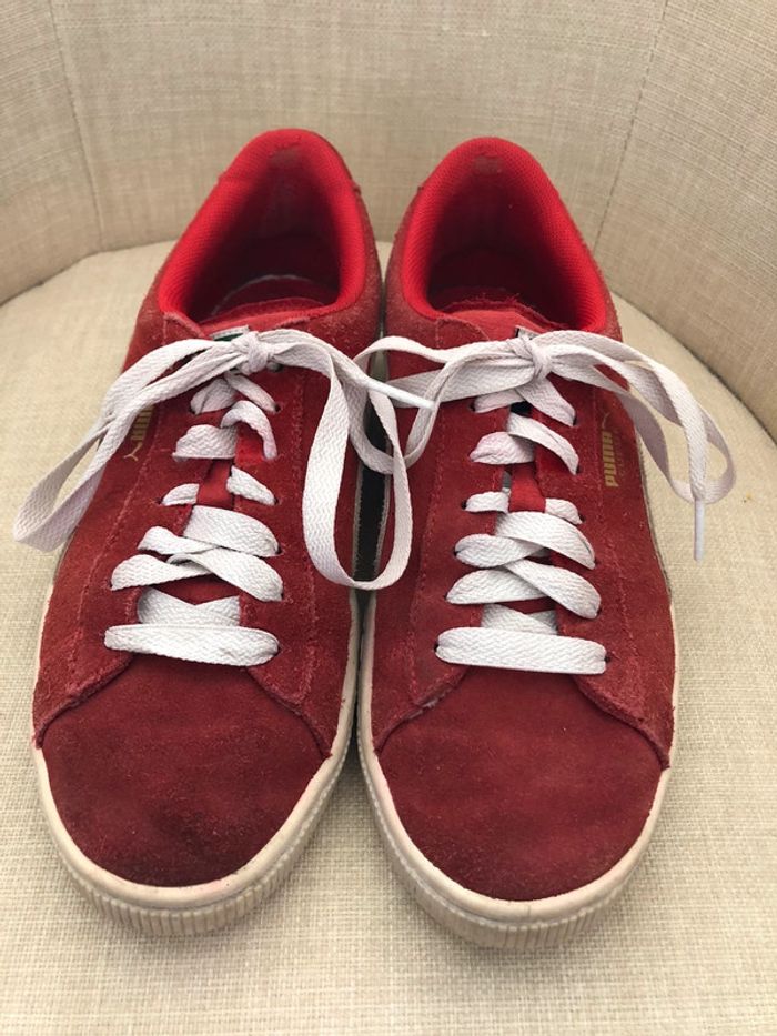 Basket Puma Suede rouge et blanche. Lacets blancs. Seront lavé lors de l’achat. Semelles extérieur en très bon état. Semelles intérieur abîmées mais ne gêne pas. Pointure 39. Taille bien et sans défauts. Négociable. #lucie_glbt_chaussure_femme