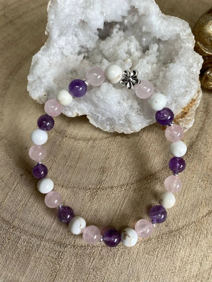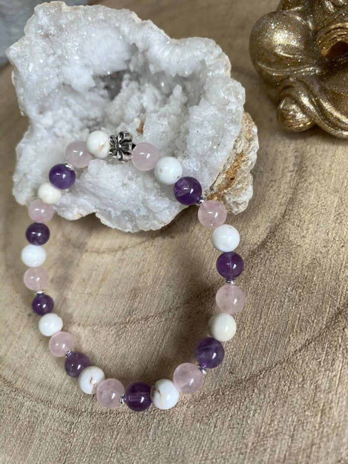 Bracelet améthyste , quartz rose et magnésite 18 cm  Lithothérapie - photo numéro 1