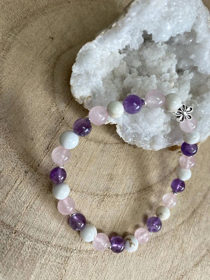 Bracelet améthyste , quartz rose et magnésite 18 cm  Lithothérapie