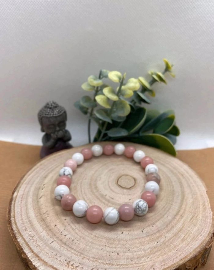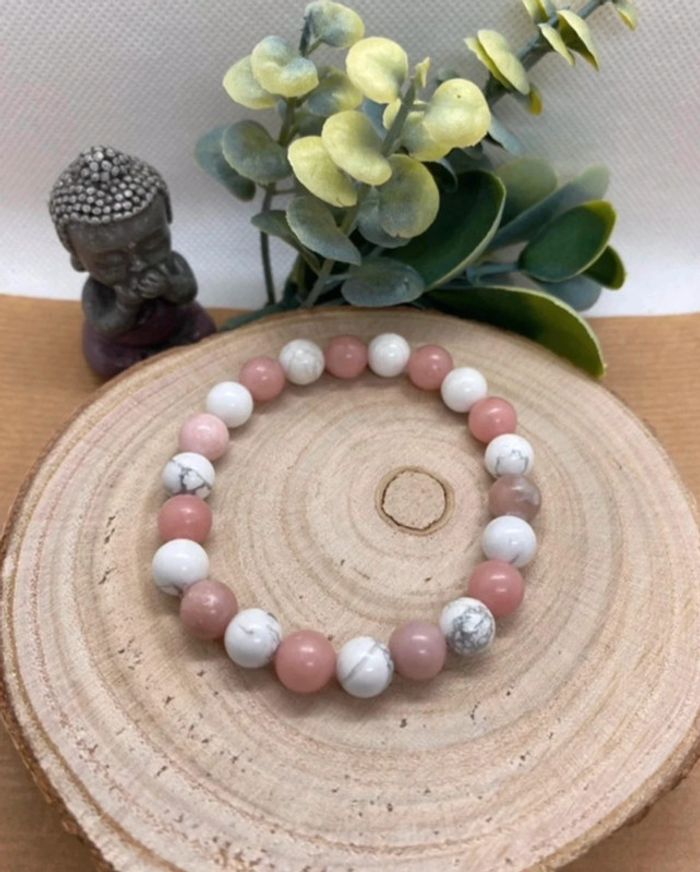 Bracelet opale rose et howlite 18 cm , lithothérapie - photo numéro 6