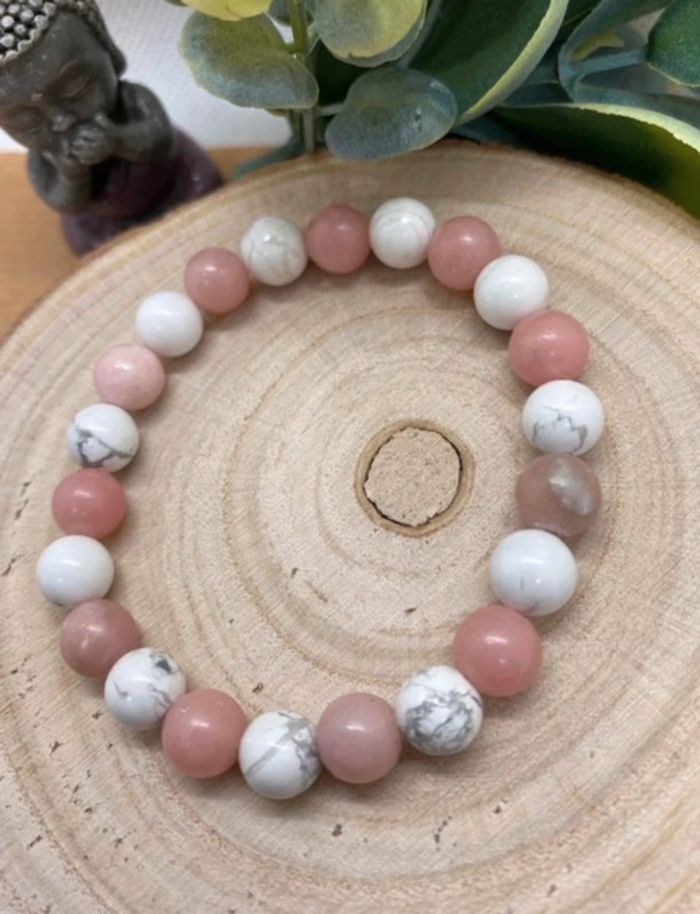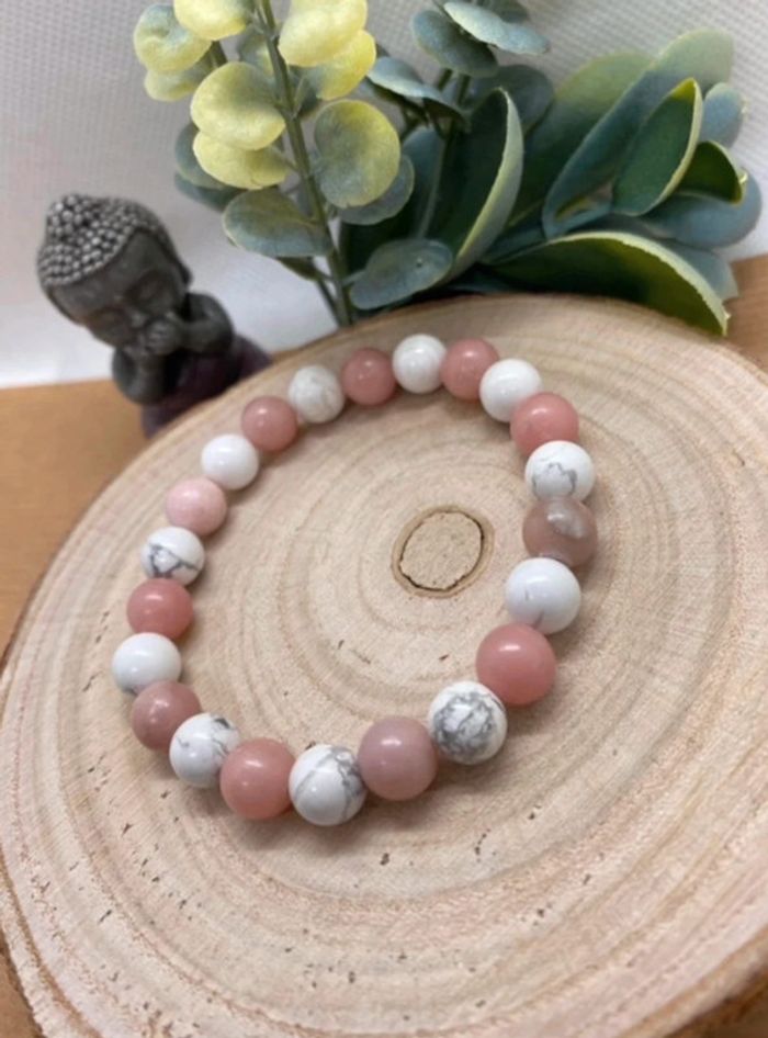 Bracelet opale rose et howlite 18 cm , lithothérapie