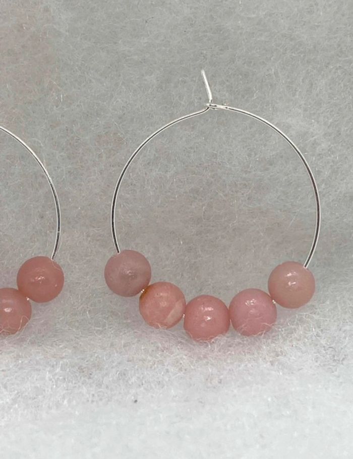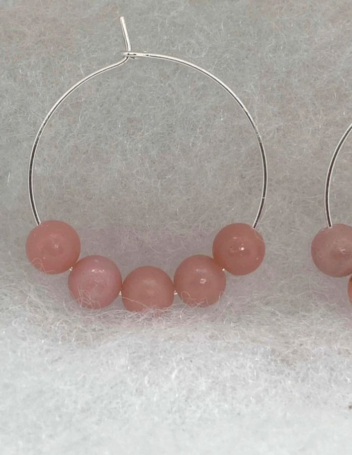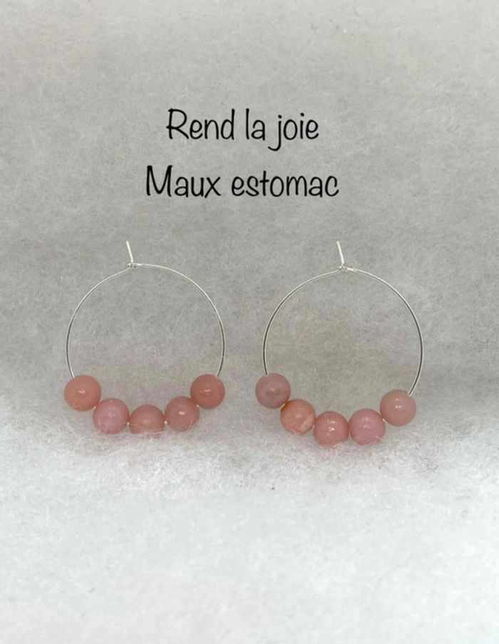 Boucles d’oreilles créoles opale rose , inoxydable , lithothérapie