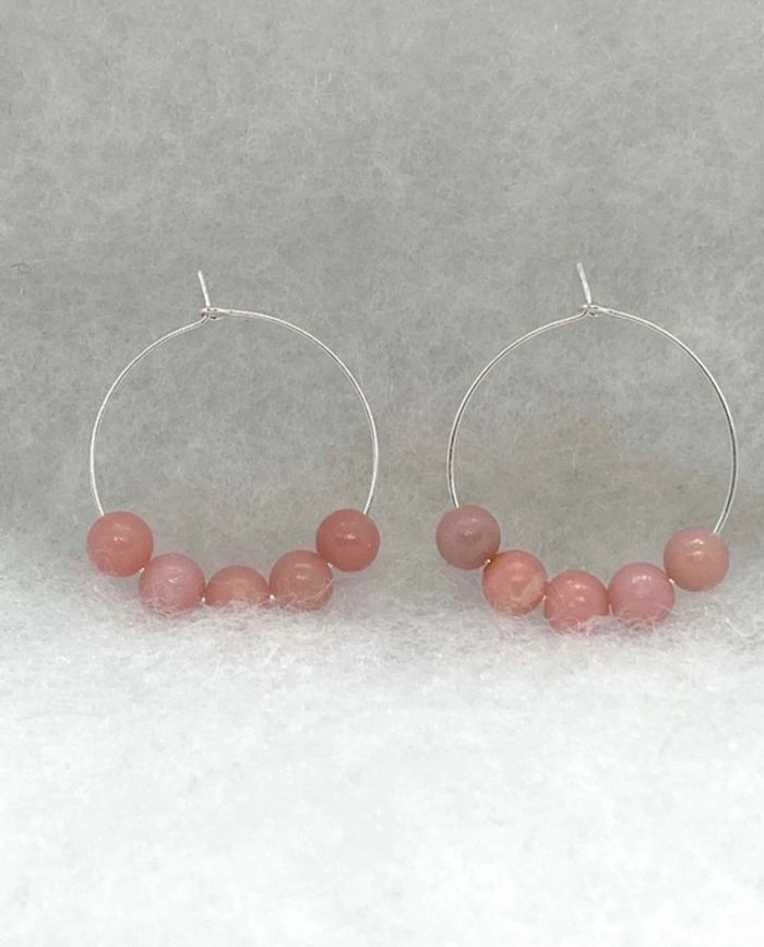 Boucles d’oreilles créoles opale rose , inoxydable , lithothérapie - photo numéro 4