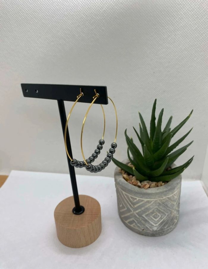 Très jolies boucles d’oreilles créoles avec perles de 4 mm en hématite naturelles Diamètre 4,5 cm Jamais utilisées Acier inoxydable Hématite équilibre le corps et l'esprit. renforce la confiance en soi. facilite la communication. régule l'afflux sanguin. éloigne les mauvaises énergies. aide à lutter contre les excès. combat les symptômes dépressifs. Atténue les vertiges #laetis0507bouclesdoreilles #laetis0507hematite