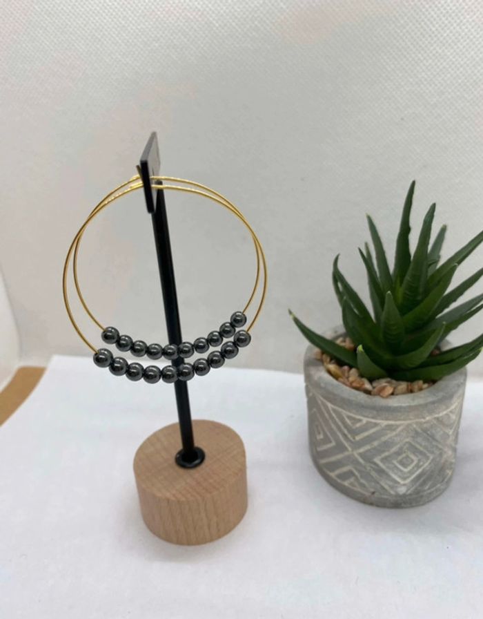 Boucles d’oreilles créoles hématite , inoxydables, lithothérapie - photo numéro 4