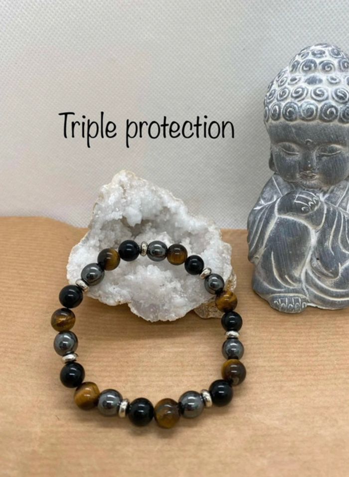 Bracelet triple protection 18,5 cm , lithothérapie - photo numéro 1