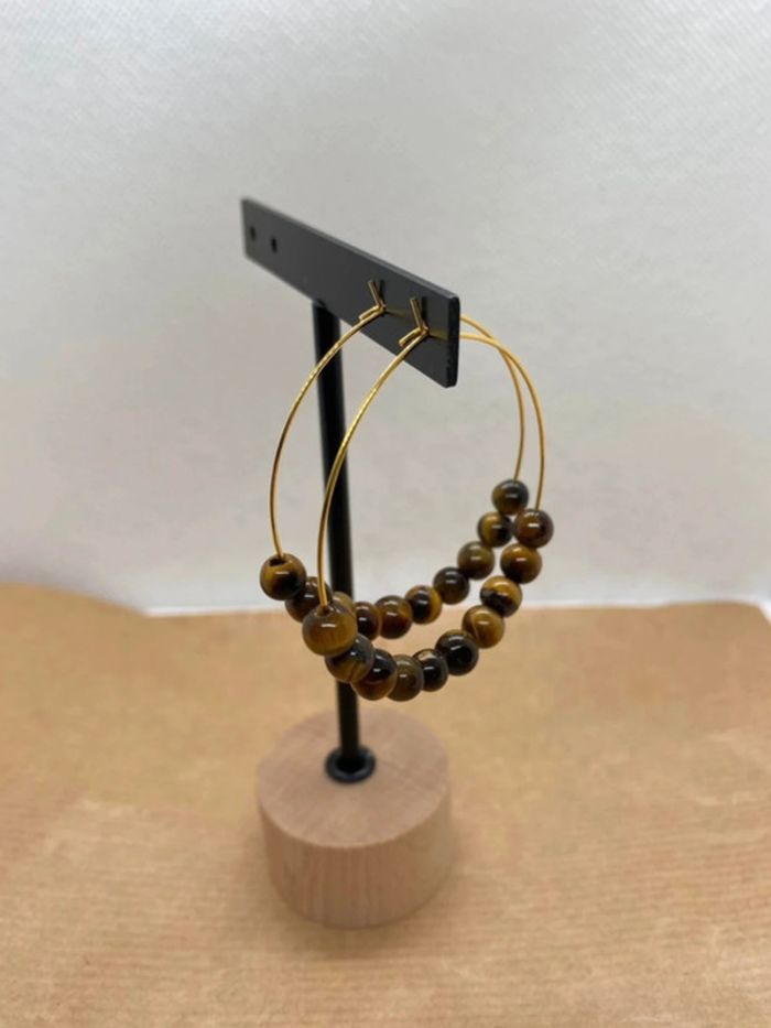 Boucles d’oreilles rondes œil de tigre inoxydables, lithothérapie - photo numéro 5
