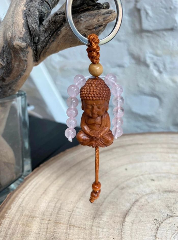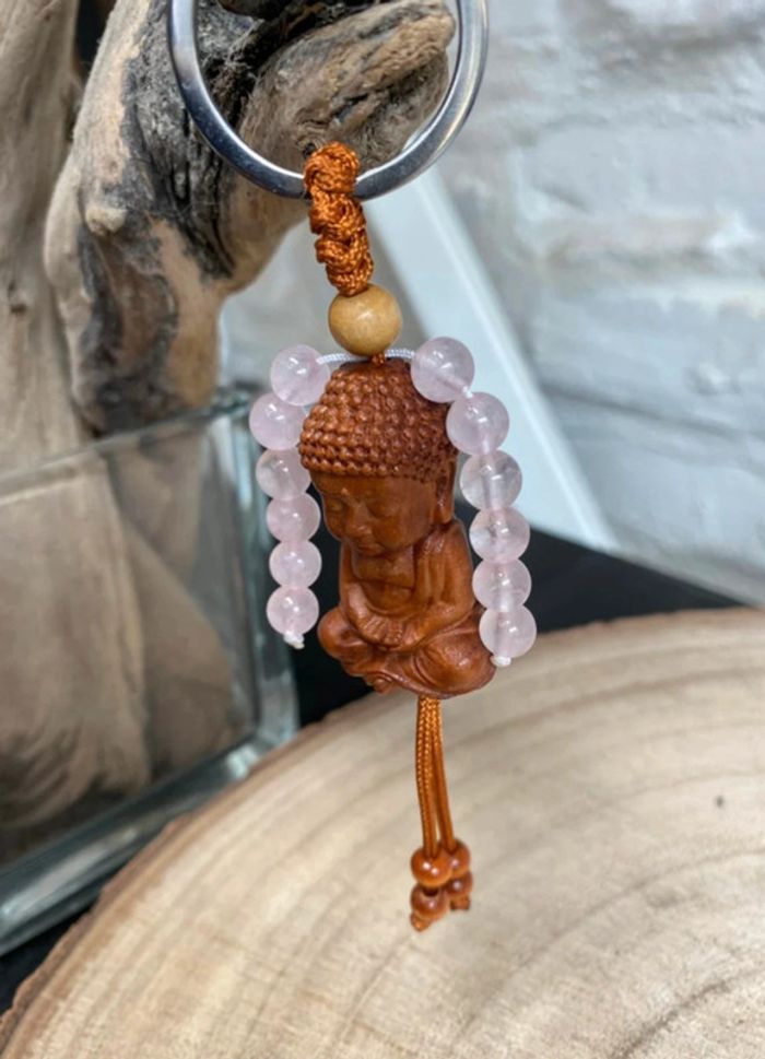 Porte clefs bouddha quartz rose , amour et apaisement, lithothérapie - photo numéro 1