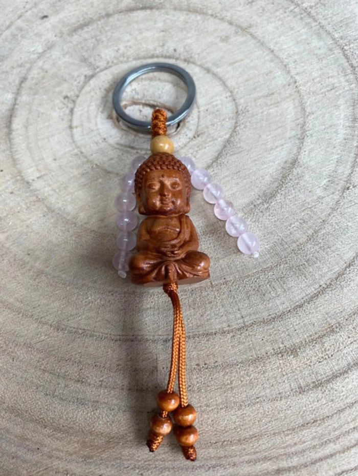 Porte clefs bouddha quartz rose , amour et apaisement, lithothérapie - photo numéro 4