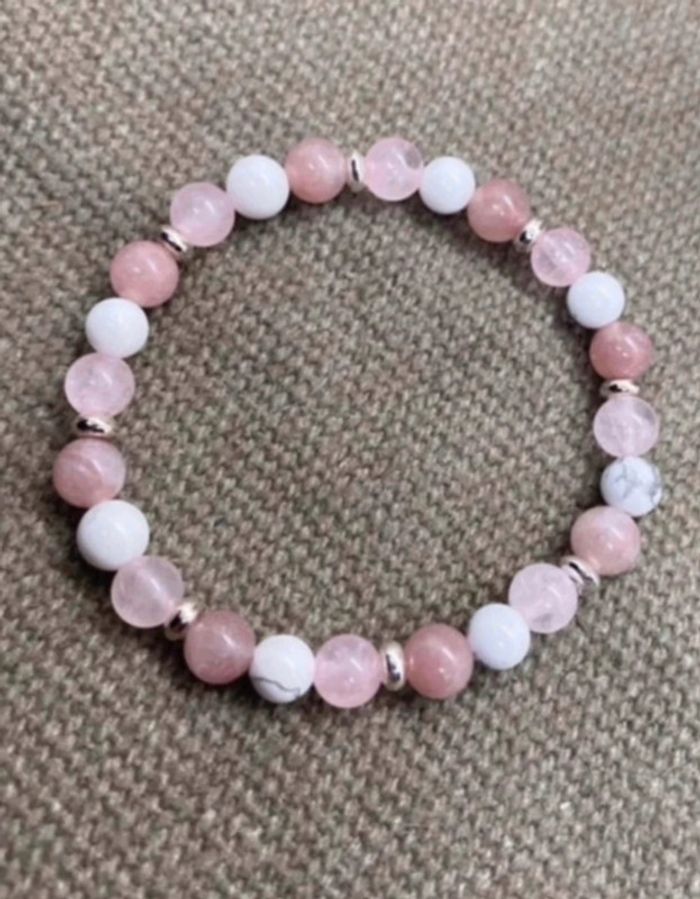 Bracelet howlite aventurine rose et quartz rose 17 cm , lithothérapie - photo numéro 1