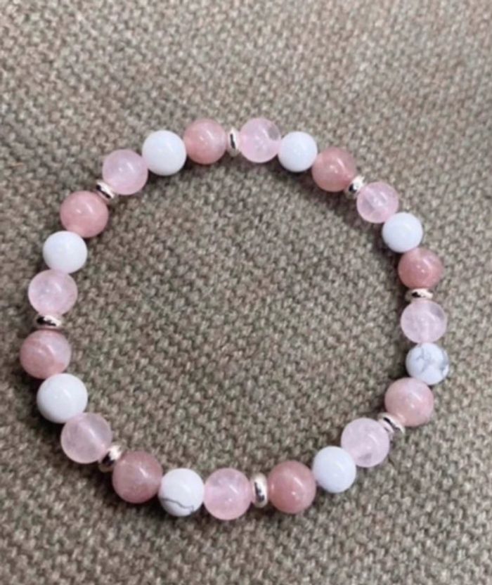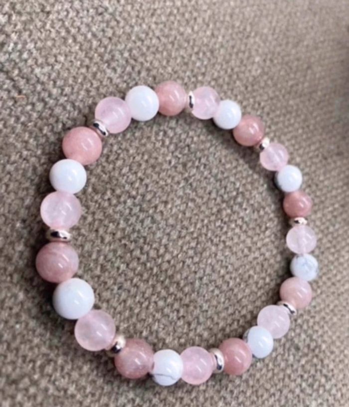 Bracelet howlite aventurine rose et quartz rose 17 cm , lithothérapie - photo numéro 4