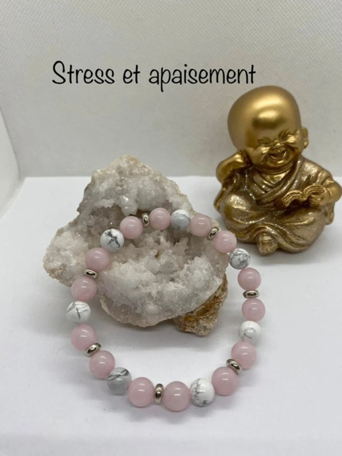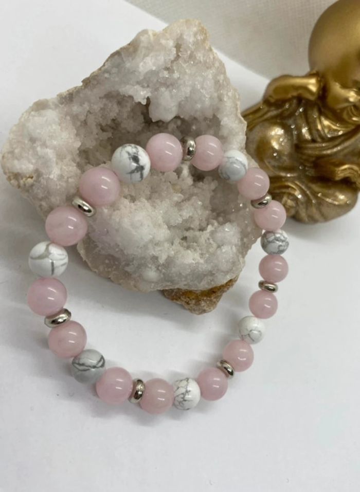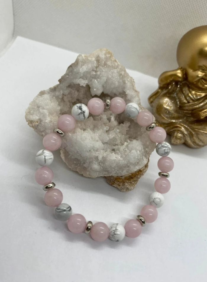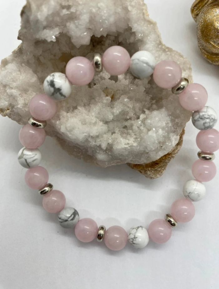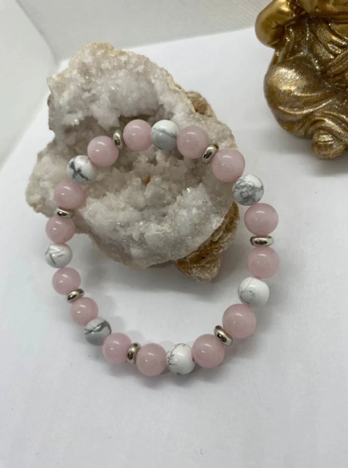 Bracelet quartz rose et howlite 19 cm , lithothérapie