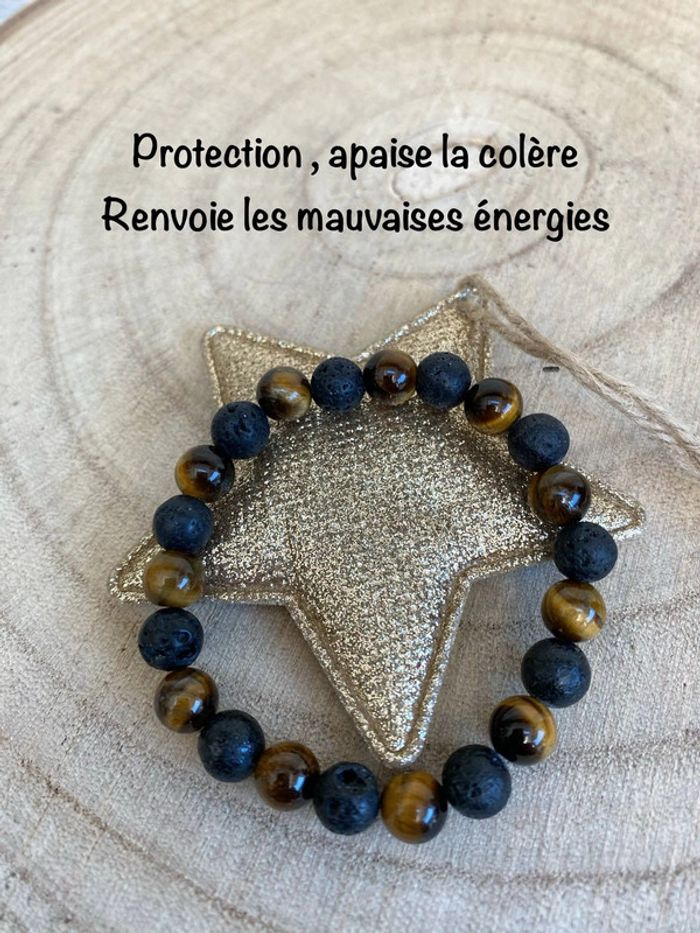 Bracelet œil de tigre et pierre de lave 18 cm , lithothérapie - photo numéro 5