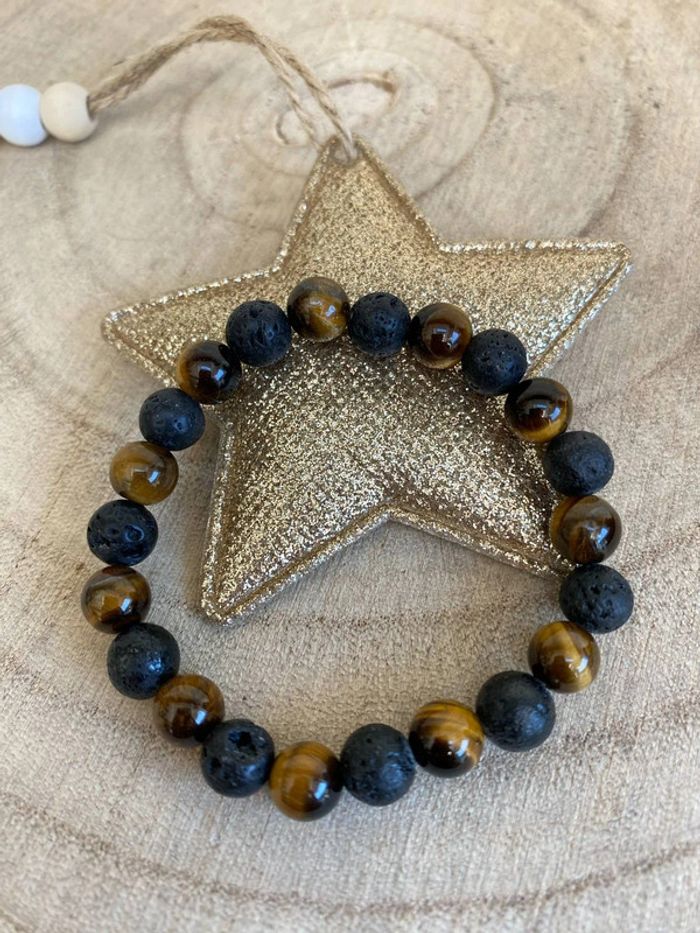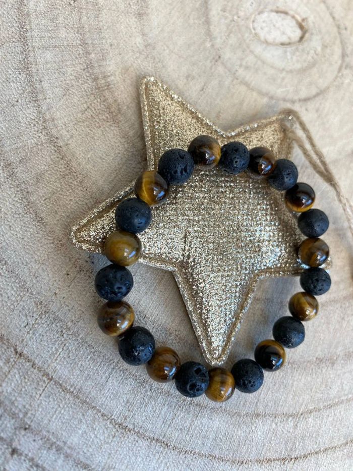 Bracelet œil de tigre et pierre de lave 18 cm , lithothérapie - photo numéro 1