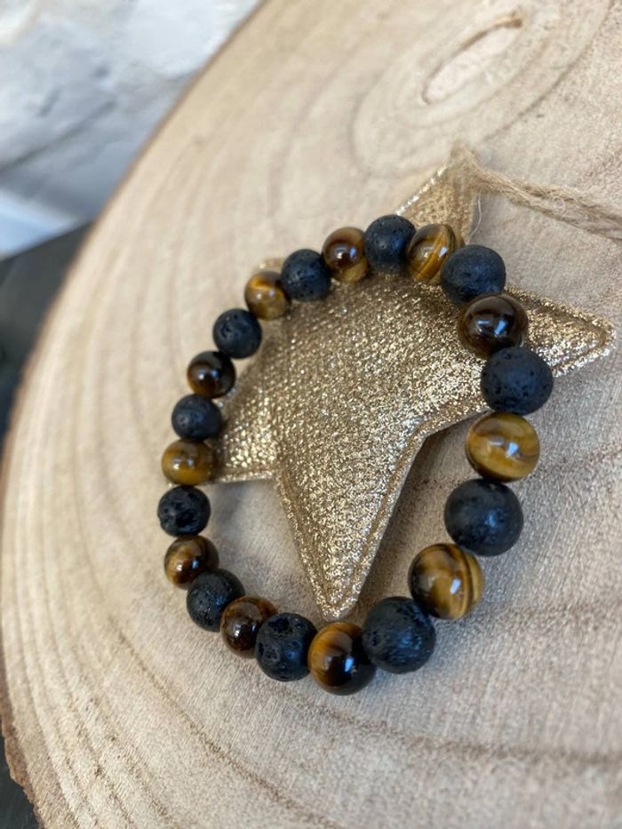 Bracelet œil de tigre et pierre de lave 18 cm , lithothérapie - photo numéro 4