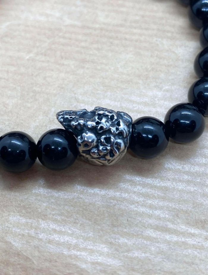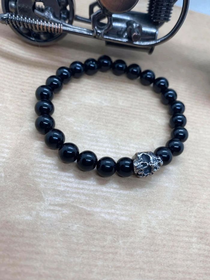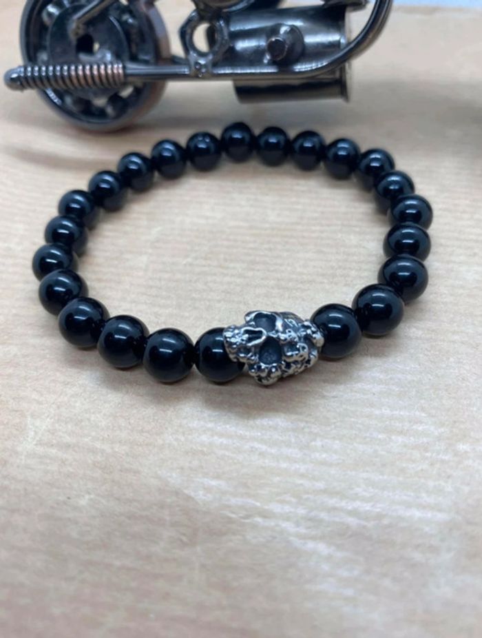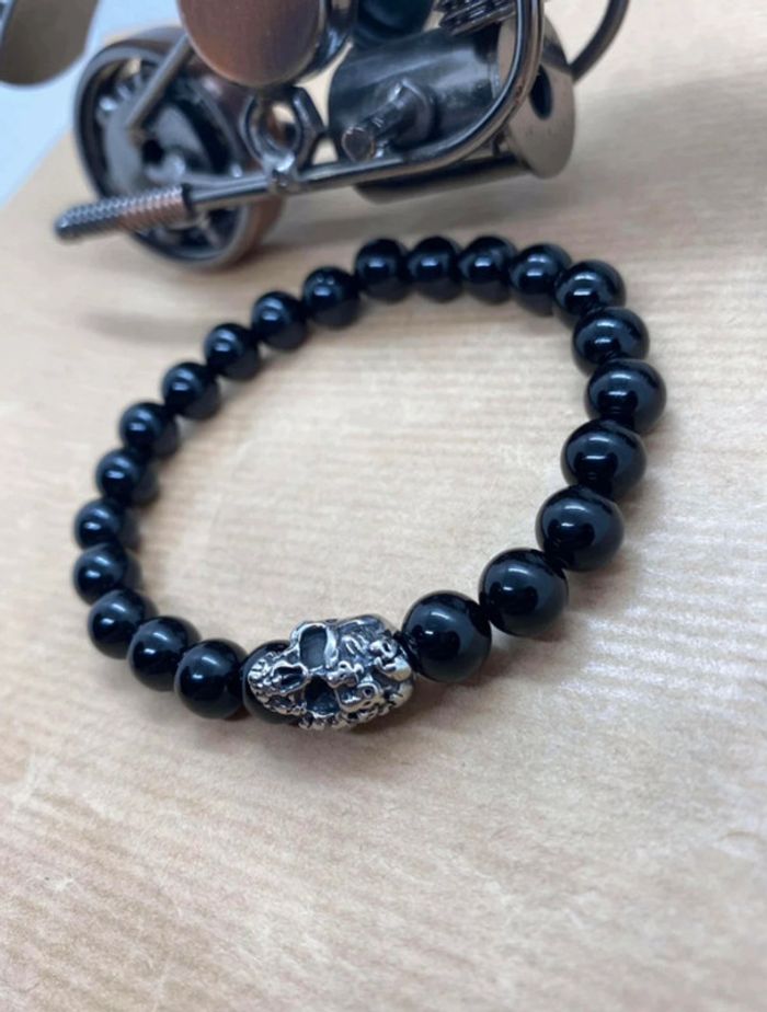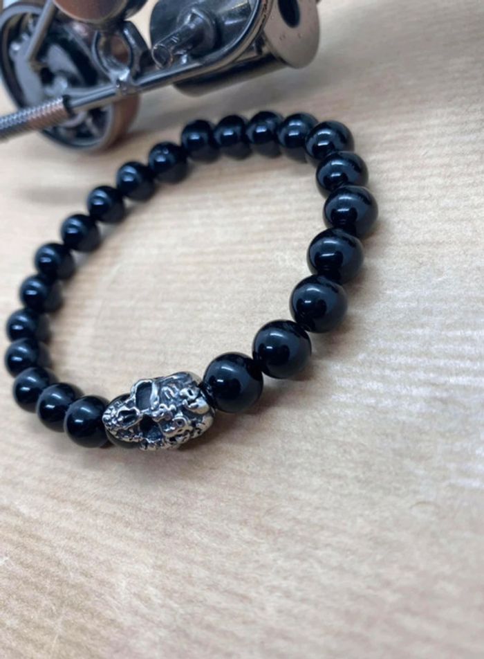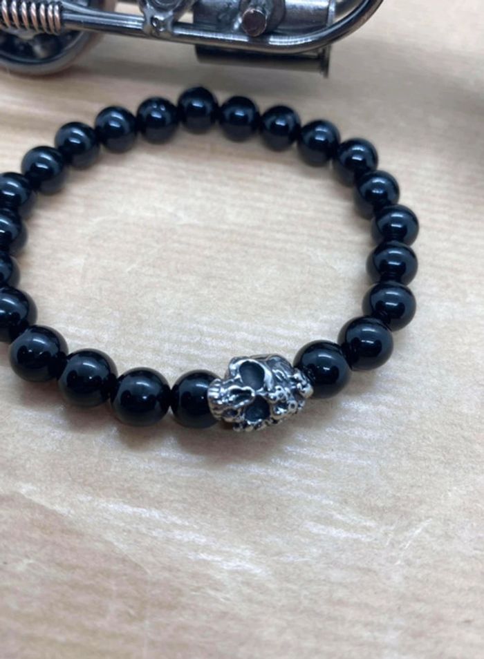Bracelet onyx et tête de mort 19,5 cm , lithothérapie - photo numéro 7