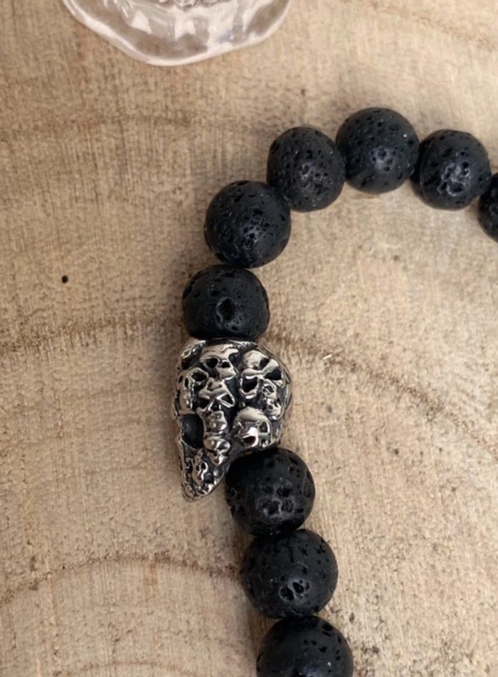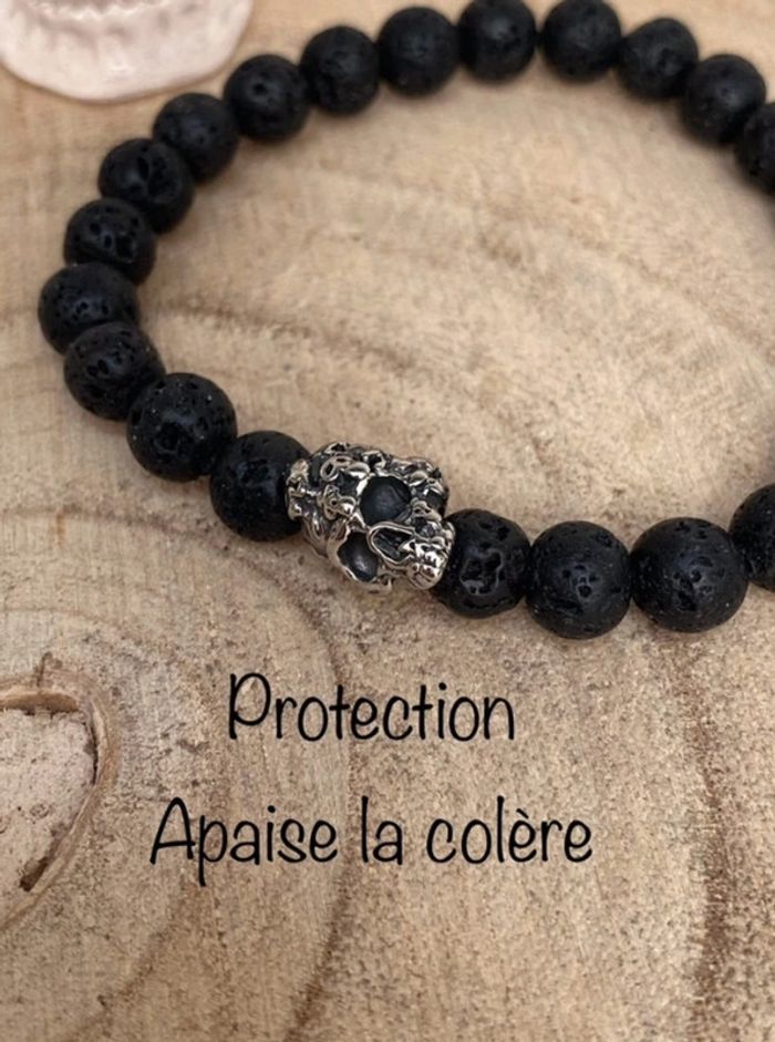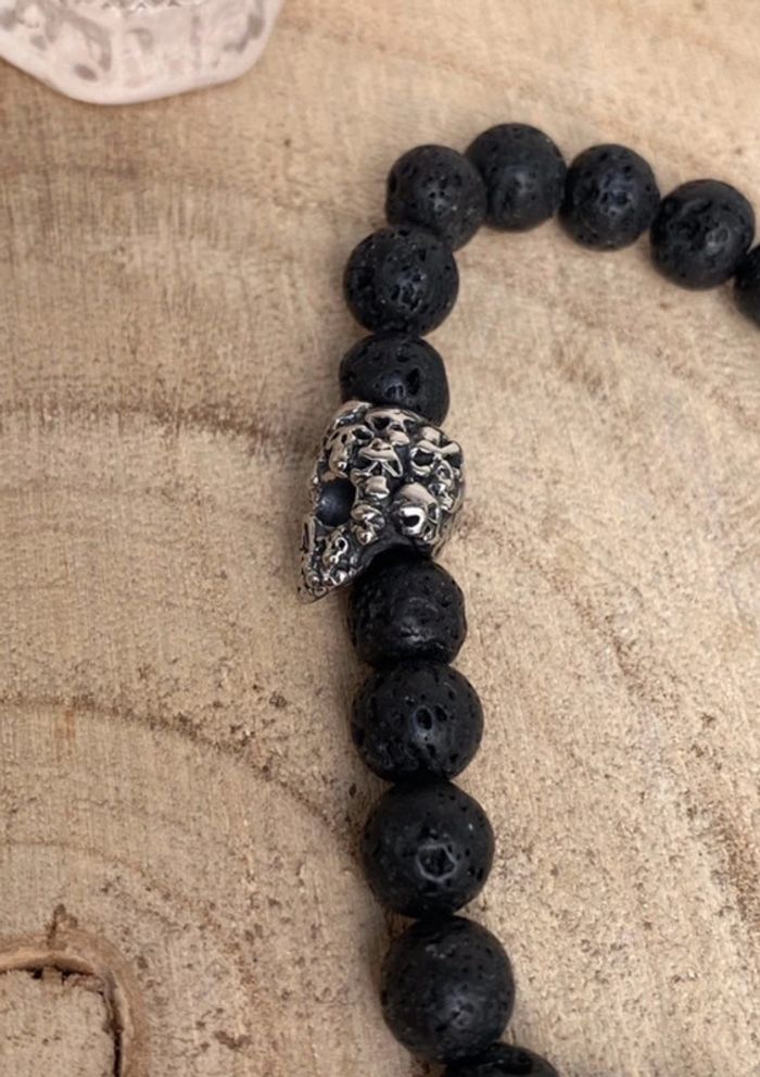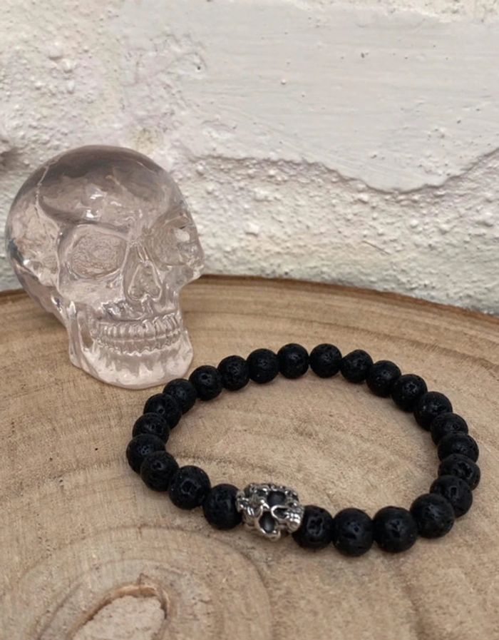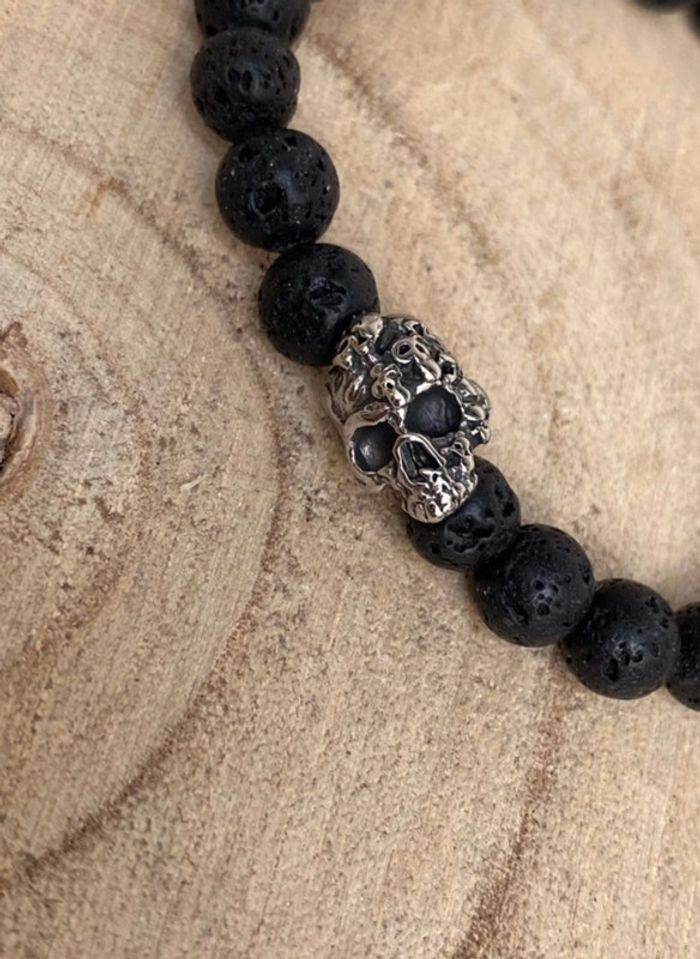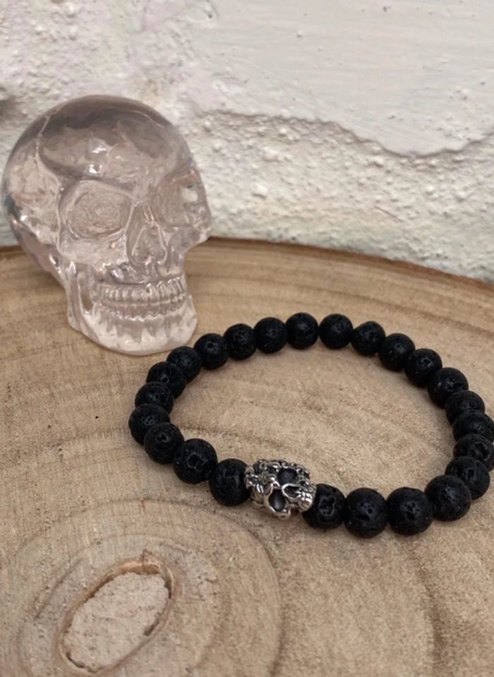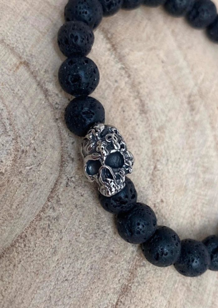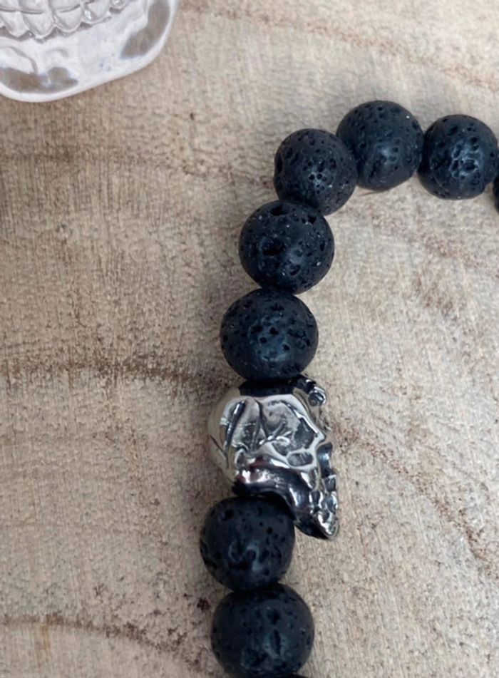 Bracelet pierre de lave et tête de mort 21 cm , lithothérapie - photo numéro 7