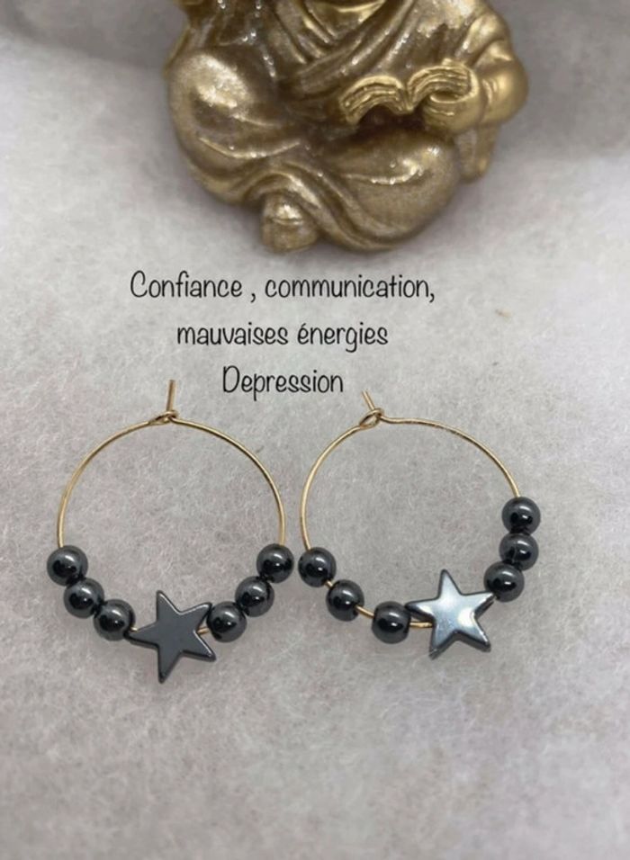 Boucles d’oreilles rondes avec hématite et étoile , inoxydable , lithotherapie - photo numéro 3