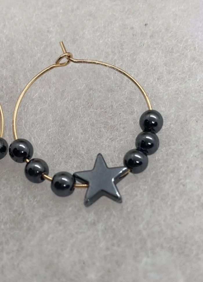 Boucles d’oreilles rondes avec hématite et étoile , inoxydable , lithotherapie - photo numéro 1