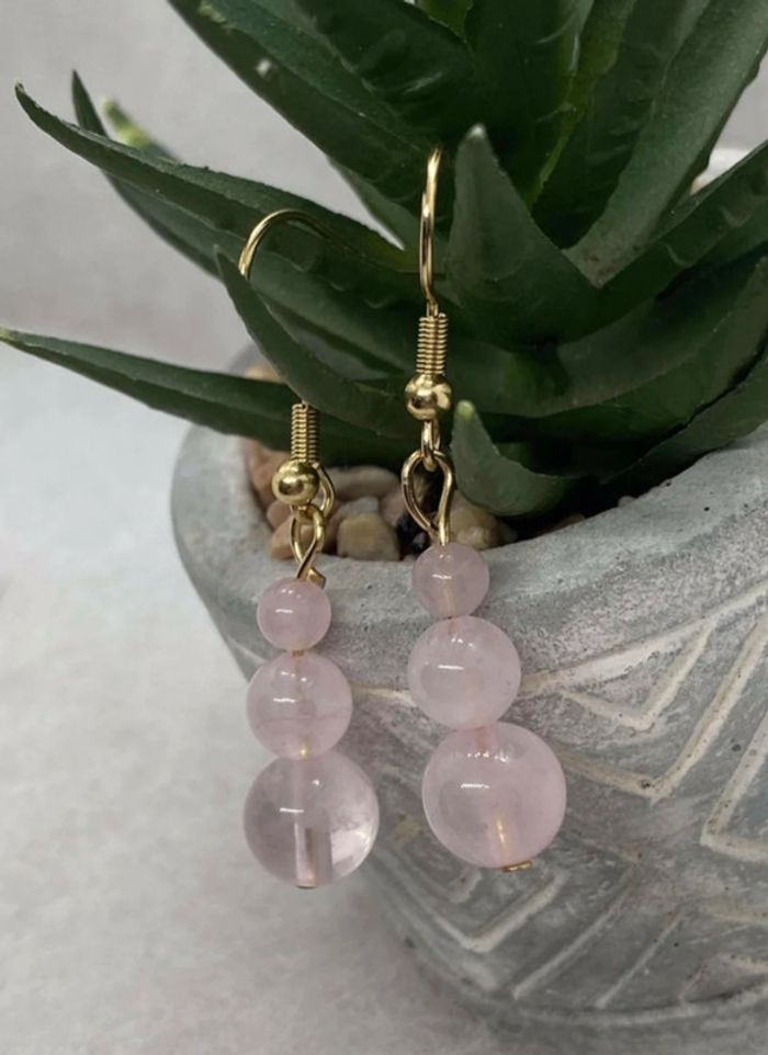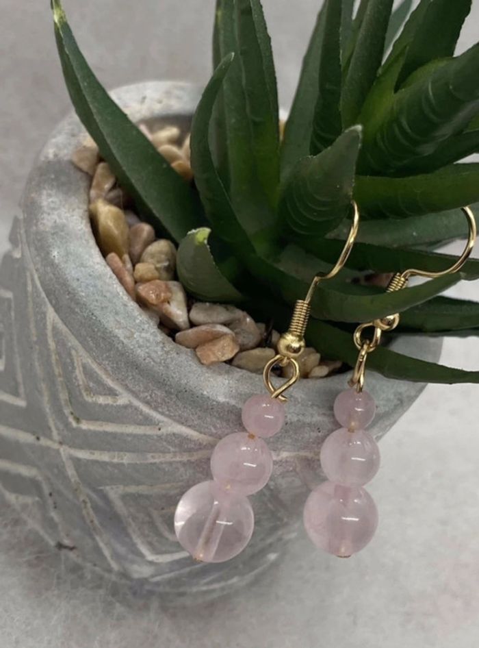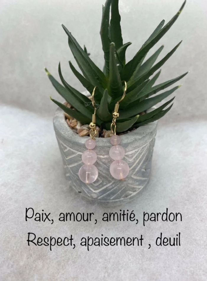 Boucles d’oreilles quartz rose , inoxydables , lithothérapie