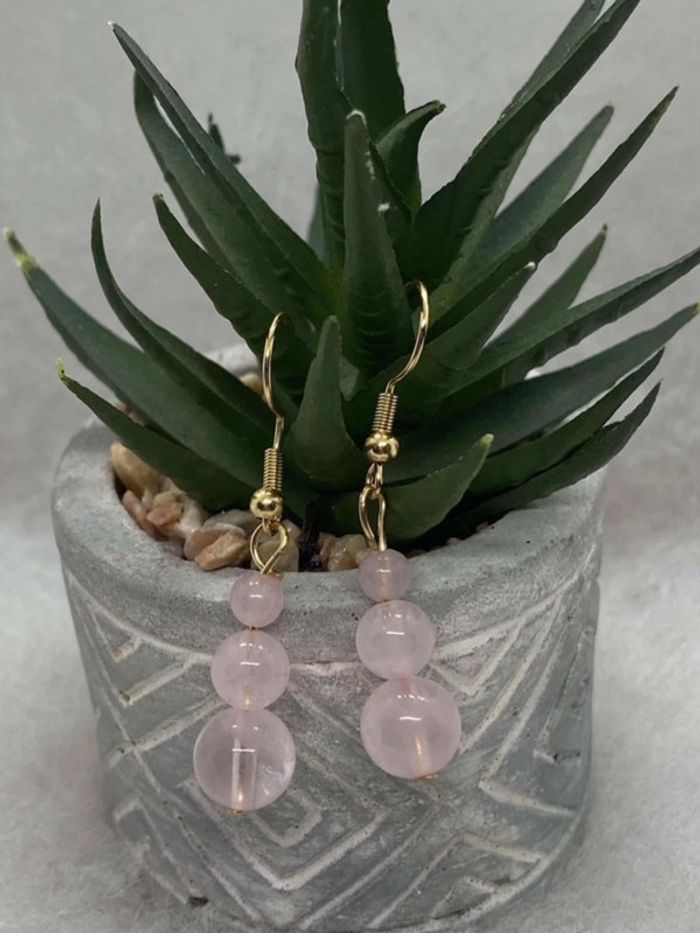 Boucles d’oreilles quartz rose , inoxydables , lithothérapie - photo numéro 1
