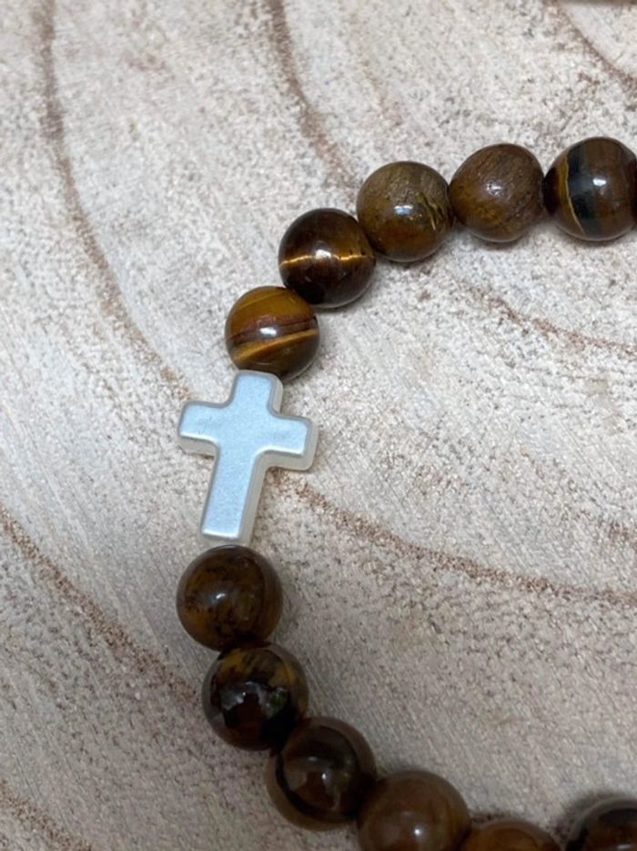 Bracelet œil de tigre et croix blanche 18 cm , lithothérapie - photo numéro 5