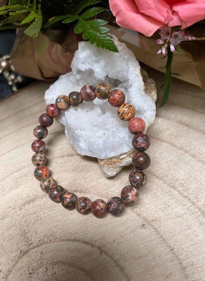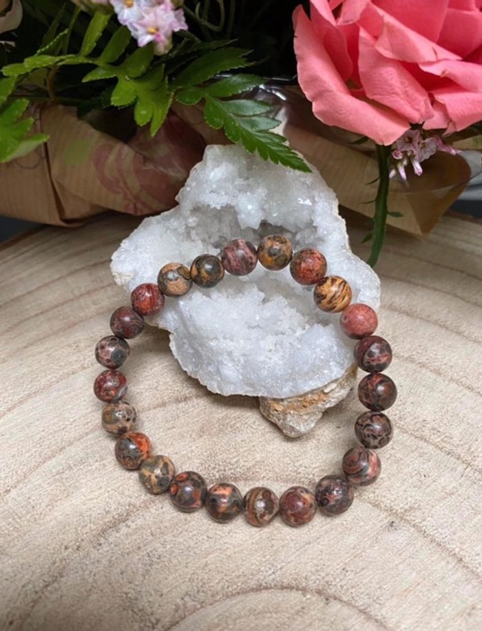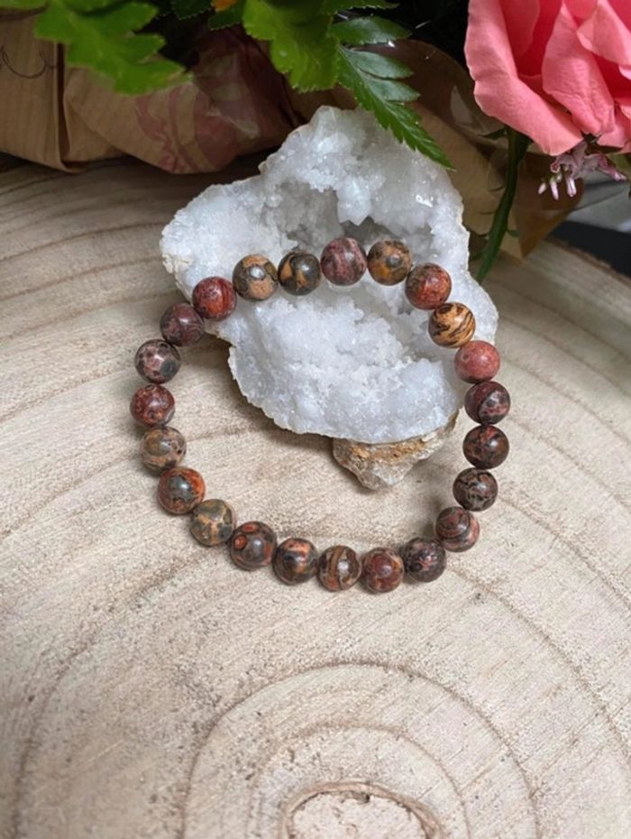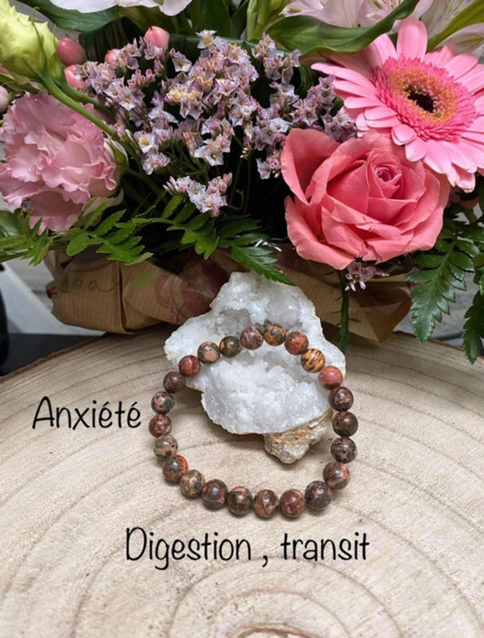 Bracelet de lithothérapie en pierres naturelles de jaspe léopard Taille 18 cm , perles de 8mm Jamais utilisé Jaspe léopard Je précise en premier lieu que la lithothérapie ne peut remplacer les conseils avisés de votre docteur en médecine référent - Le jaspe léopard est réputé particulièrement efficace pour les problèmes du système digestif et du transit intestinal : - le jaspe léopard protège la vésicule biliaire et le bas ventre - il participe au bon fonctionnement de la digestion - il permet de diminuer l'anxiété #laetis0507jaspeleopard 37
