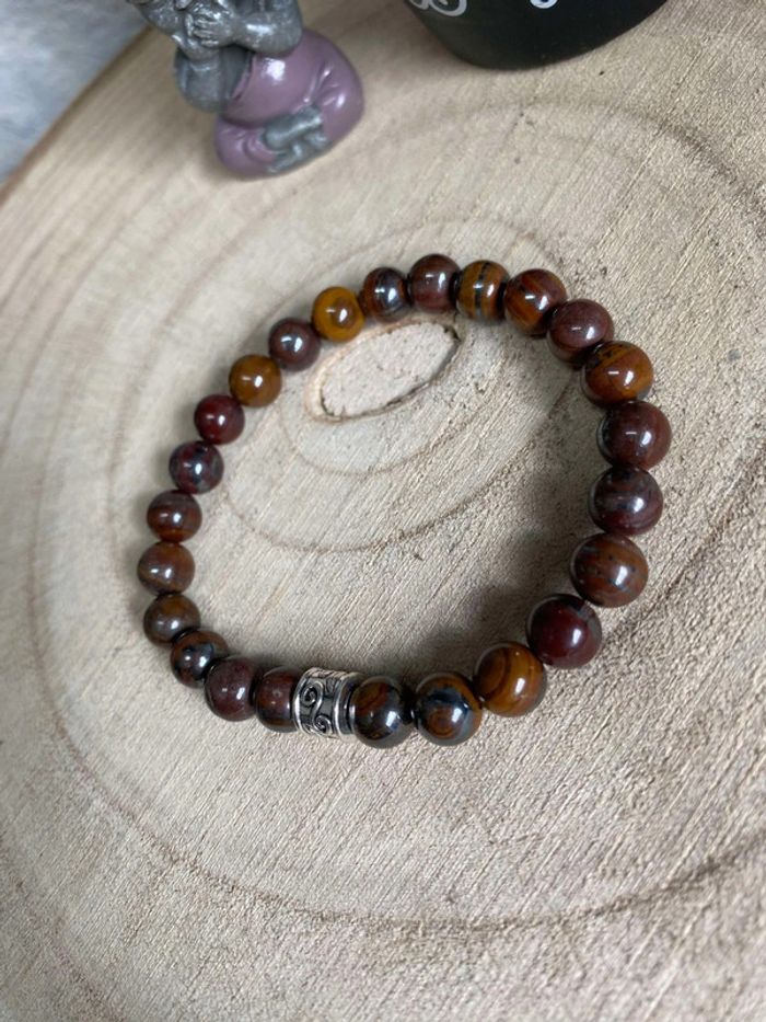 Bracelet de lithothérapie en pierre naturelle d’œil de fer Taille 20 cm , perles de 8 mm Jamais porté Œil de Fer Pierre de force, de courage et de protection Propriétés de l’œil de fer : L’œil de fer est une pierre rare et puissante, composée d’œil de tigre, de jaspe rouge et d’hématite. Elle allie les énergies de ces trois pierres, ce qui en fait une alliée précieuse pour traverser les périodes intenses. Force et vitalité : stimule l’énergie physique, renforce la motivation. Courage et persévérance : idéale pour aller au bout des projets ambitieux. Protection puissante : protège des énergies négatives et du stress. Ancrage : aide à garder les pieds sur terre en période de changement. 6b #laetis0507oeildefer
