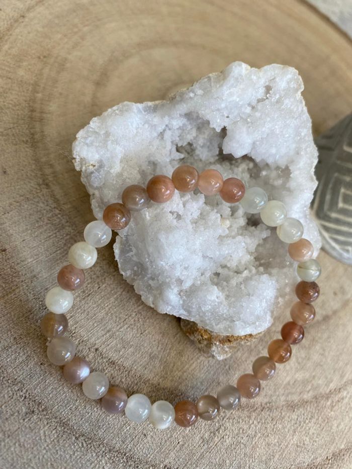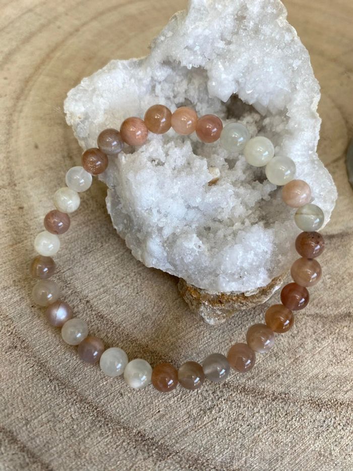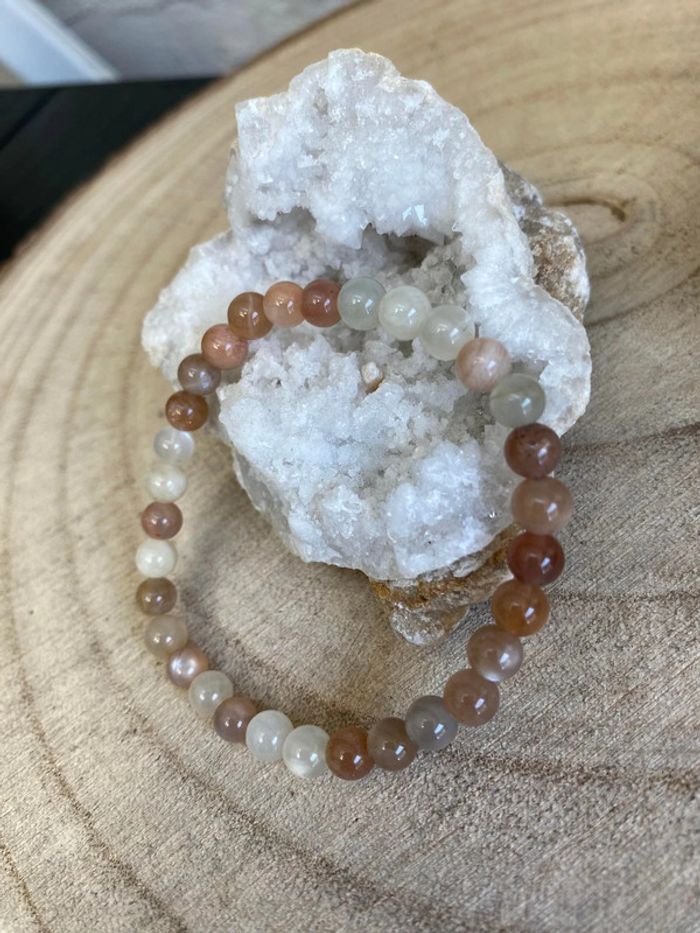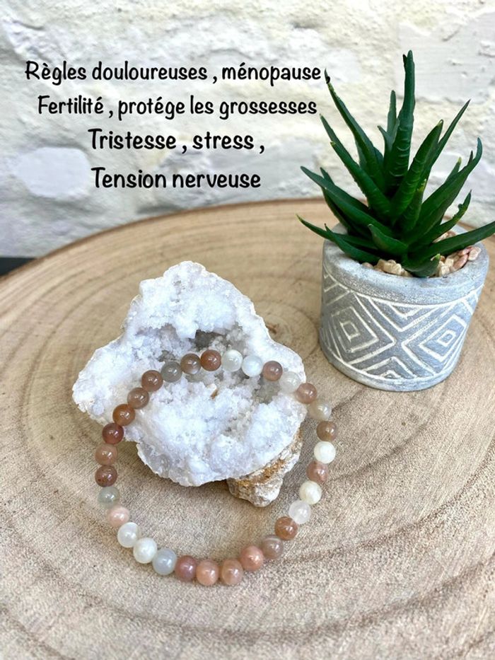 Très joli bracelet de lithothérapie en pierres naturelles de lune multicolore Taille 18 cm , perles de 6 mm Jamais utilisé 🌙Pierre de lune 🌔 Soulage les troubles et douleurs menstruelles et de la ménopause Favorise un meilleur sommeil.😴 Calme l'hyperactivité des enfants. Aide à la guérison des problèmes de peau. Développe l'intuition et la créativité Permet d'activer une bonne digestion. Renforce la fertilité et protège les grossesses.🤰 Ces pierres aident à lutter contre les états de tristesse intense. Elles réduisent significativement le stress et les tensions nerveuses. Elles donnent l’envie de reprendre une activité physique. Elles favorisent la bonne circulation des fluides corporels.  88 #laetis0507pierredelune