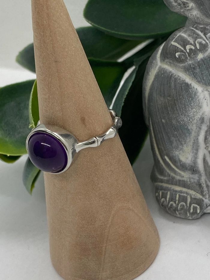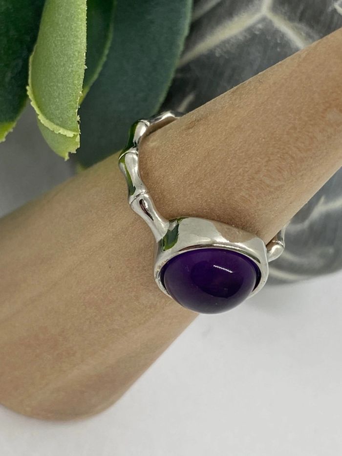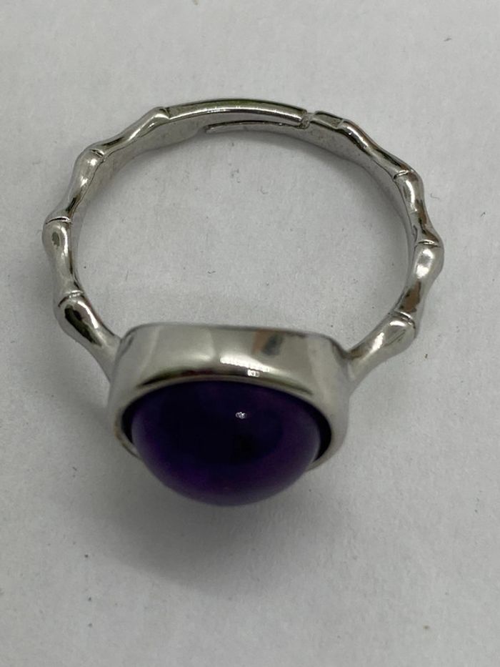 Bague améthyste , ajustable et inoxydable, lithothérapie - photo numéro 3