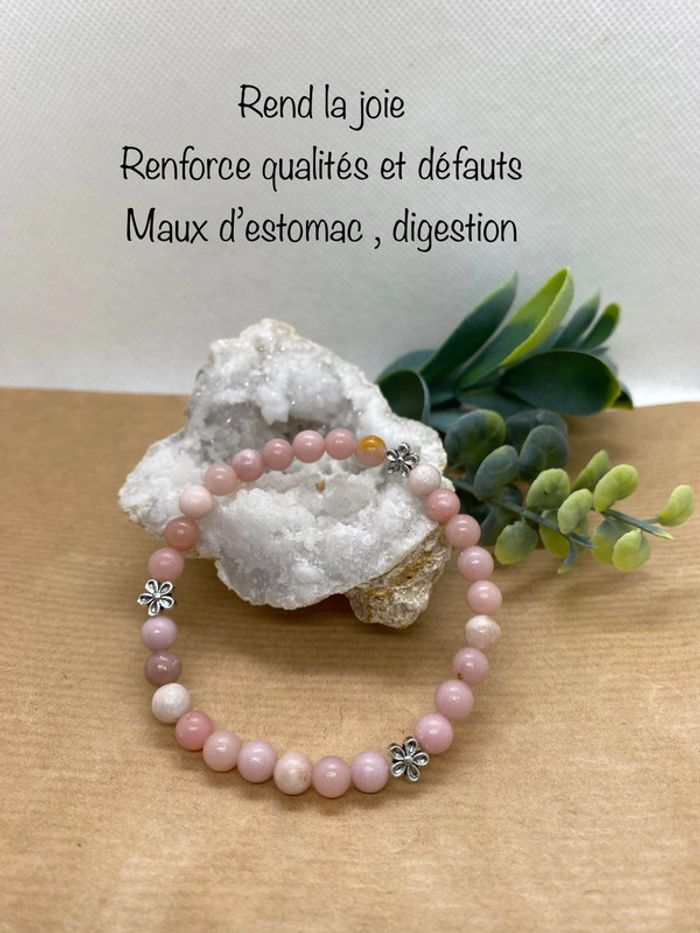 Bracelet opale rose et fleurs 19,5 cm , lithothérapie - photo numéro 2