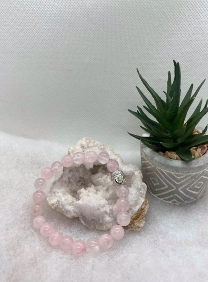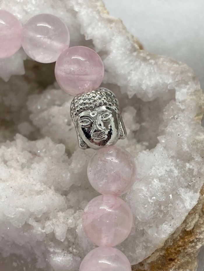Bracelet quartz rose et bouddha 18,5 cm , lithothérapie - photo numéro 3