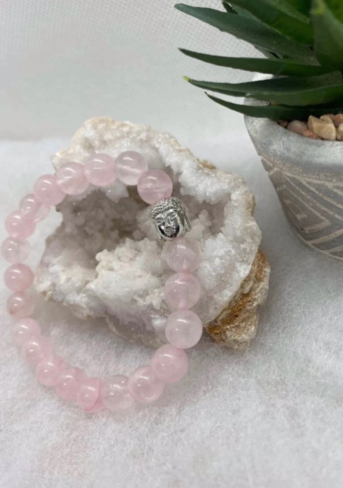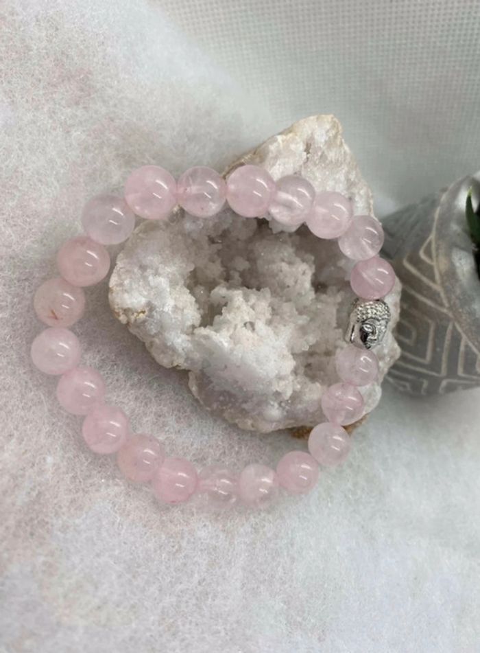 Bracelet quartz rose et bouddha 18,5 cm , lithothérapie - photo numéro 1