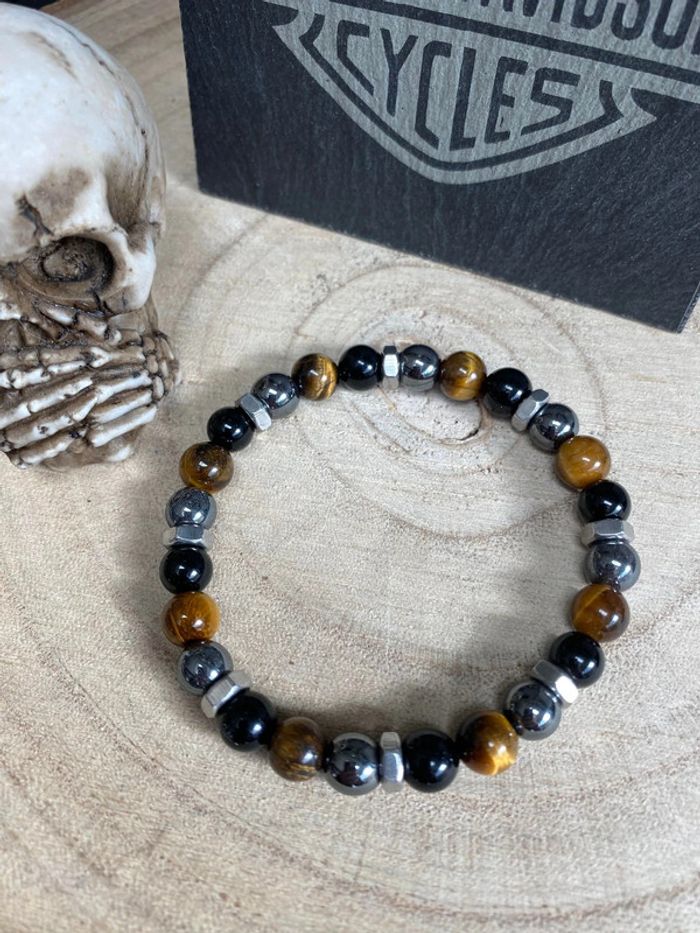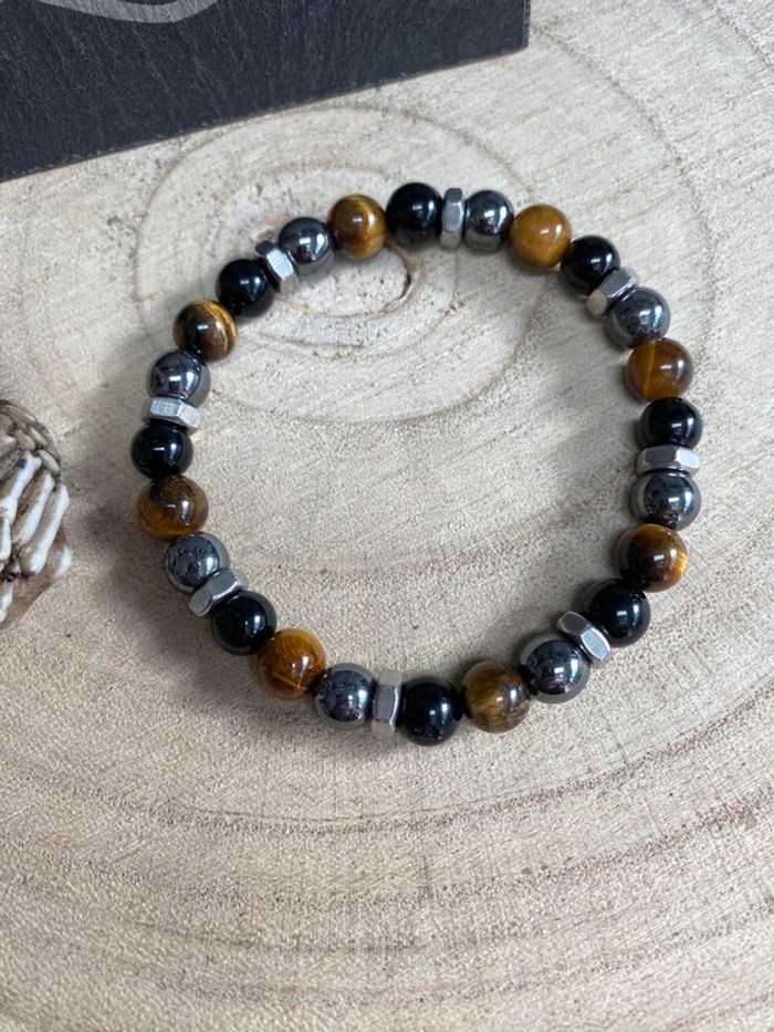 Bracelet triple protection et boulons 20,5 cm , lithothérapie - photo numéro 1