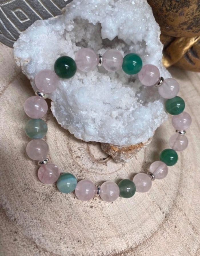 Bracelet quartz rose et Agate verte 18,5 cm , lithothérapie - photo numéro 3