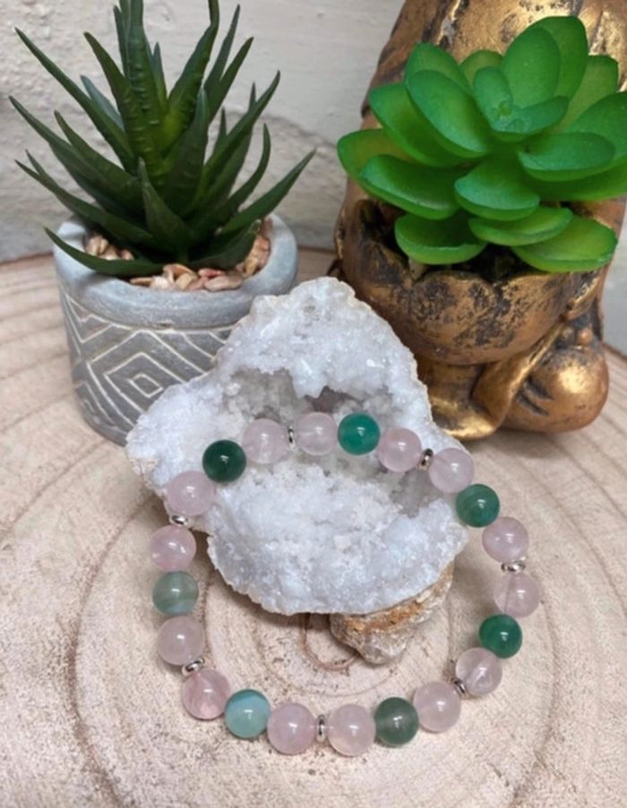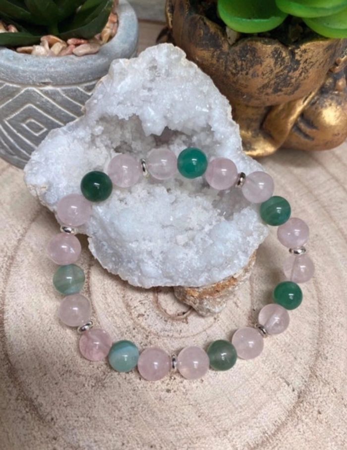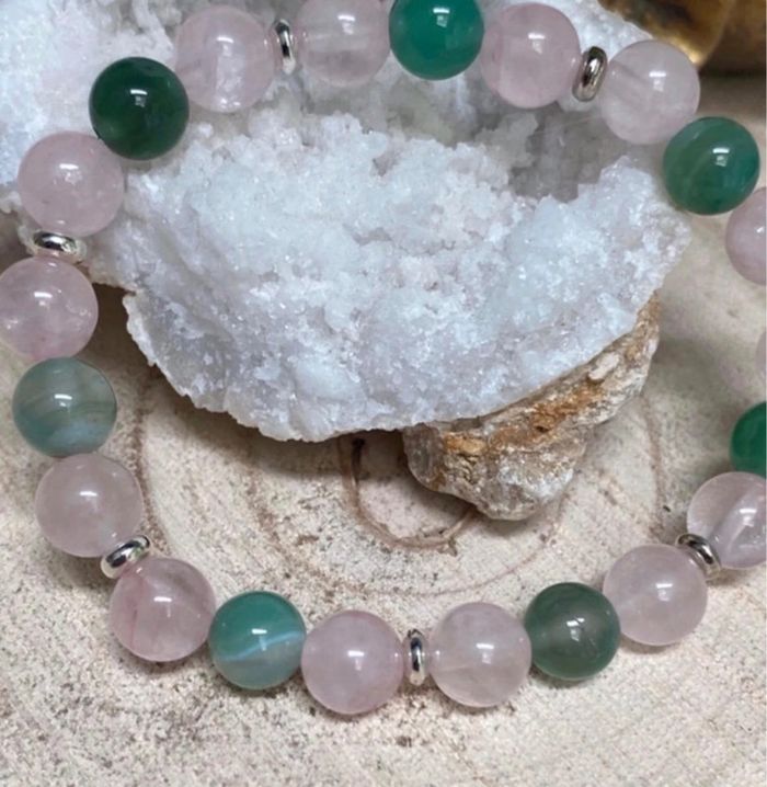 Bracelet quartz rose et Agate verte 18,5 cm , lithothérapie - photo numéro 1