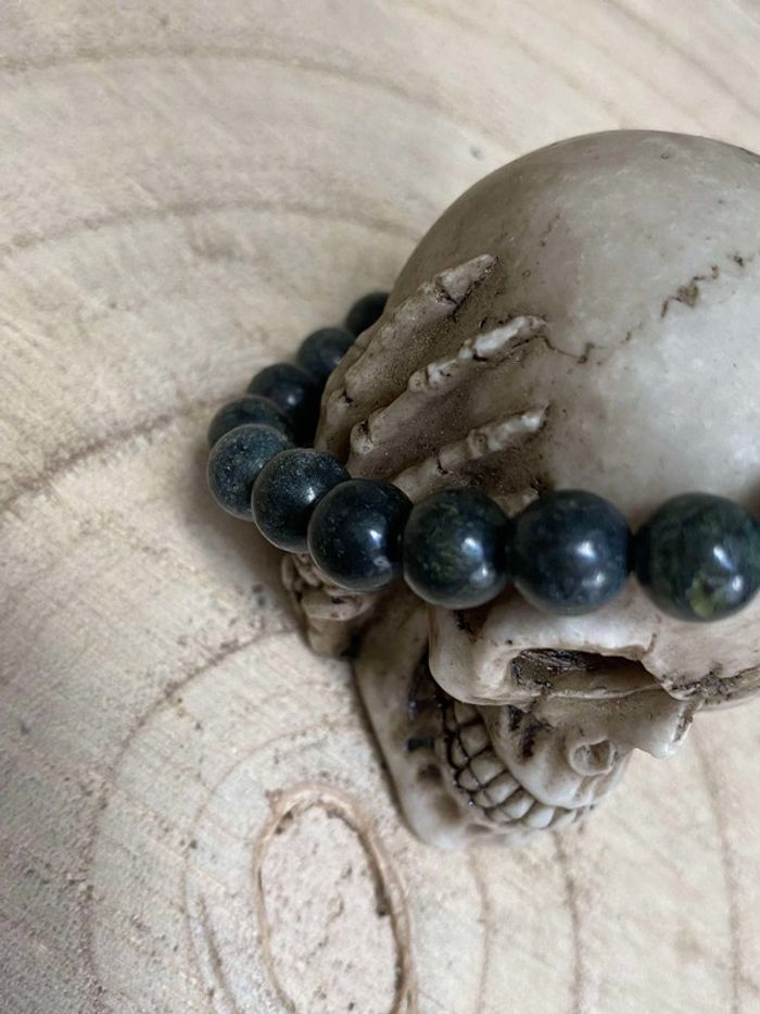 Bracelet en serpentine et tête de mort 19 cm , lithothérapie - photo numéro 4