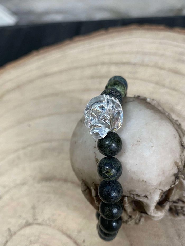 Bracelet en serpentine et tête de mort 19 cm , lithothérapie