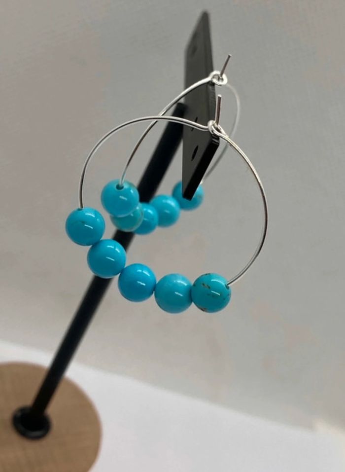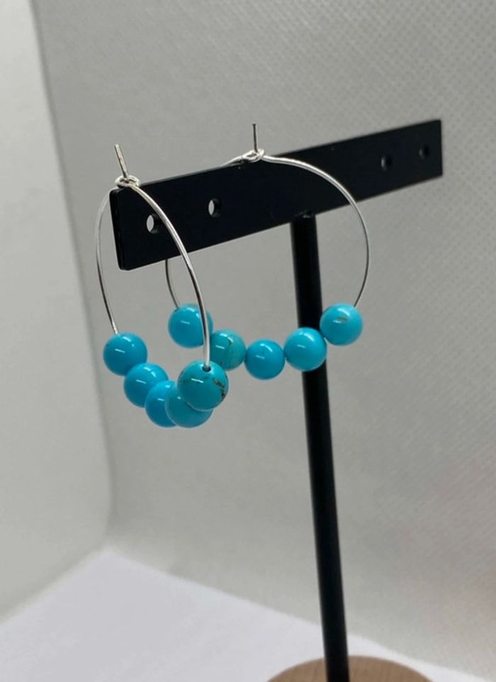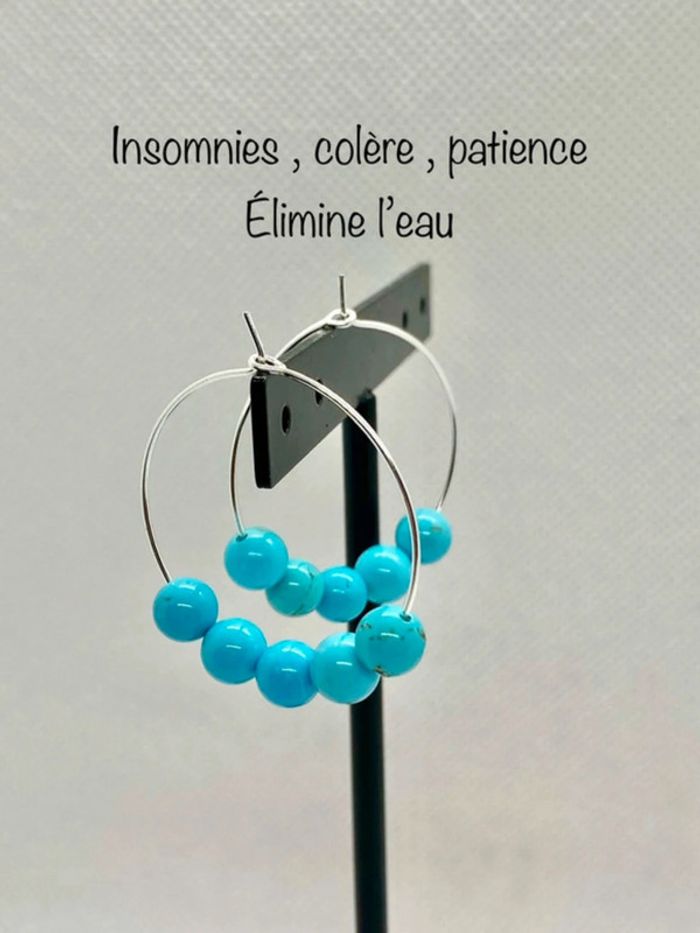 Très jolies boucles d’oreilles créoles en acier inoxydable et avec perles naturelles de howlite bleu teintée en 6 mm Howlite bleue - la howlite est une pierre réputée pour tout ceux qui veulent faire des régimes, elle élimine toute l'eau - la howlite permet de lutter contre les insomnies - la howlite permet de controler les crises de colère et enseigne la patience - la howlite permet à une personne d'être moins égoïste #laetis0507howlitebleuteintee #laetis0507bouclesdoreilles