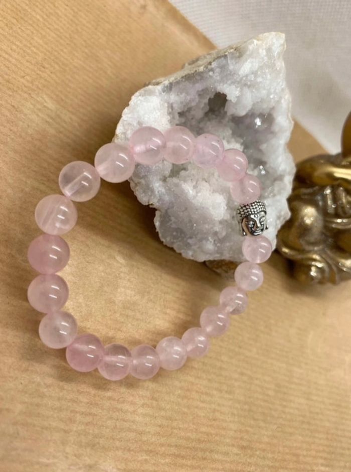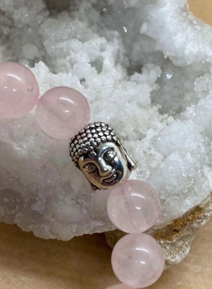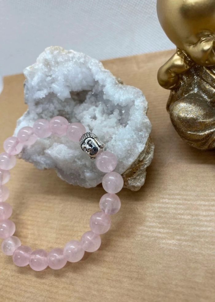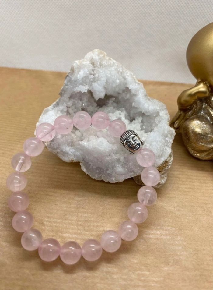 Bracelet quartz rose et bouddha 17,5 cm , lithothérapie - photo numéro 1