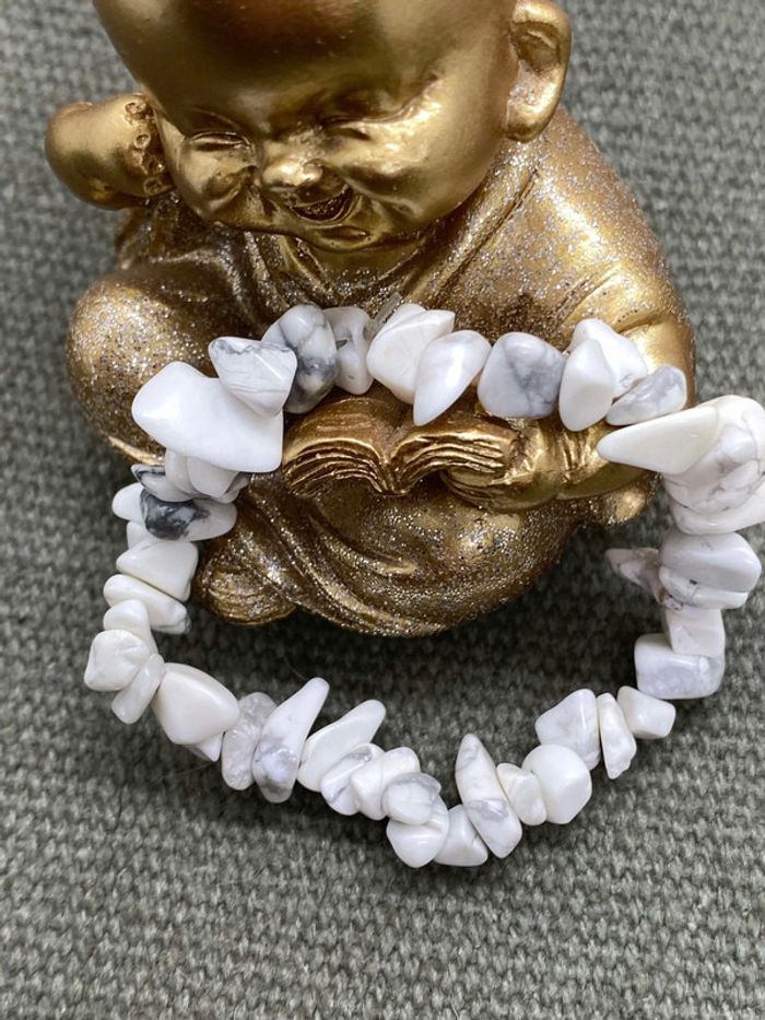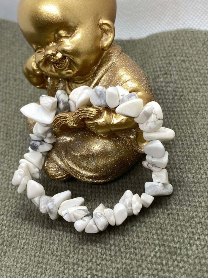 Bracelet chips de howlite blanche , 17 cm , lithothérapie - photo numéro 4