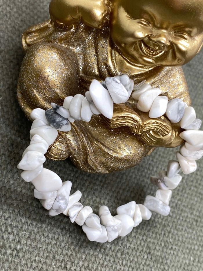 Bracelet chips de howlite blanche , 17 cm , lithothérapie - photo numéro 1